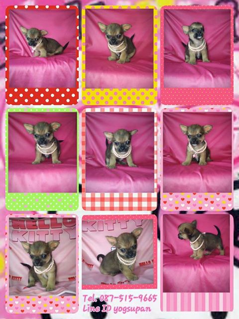 ชิวาวา ขนสั้น ลายแฟนซี สีขาวน้ำตาล เพศ เมีย โทร 0875159665 จ สุพรรณบุรี อ.เมือง