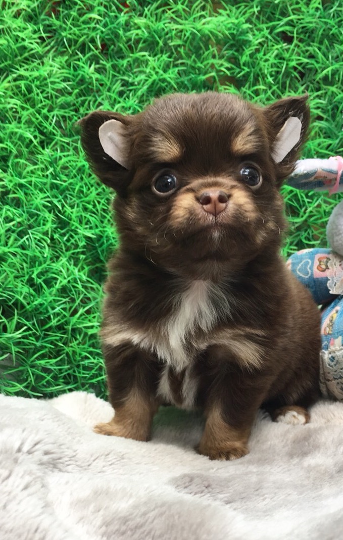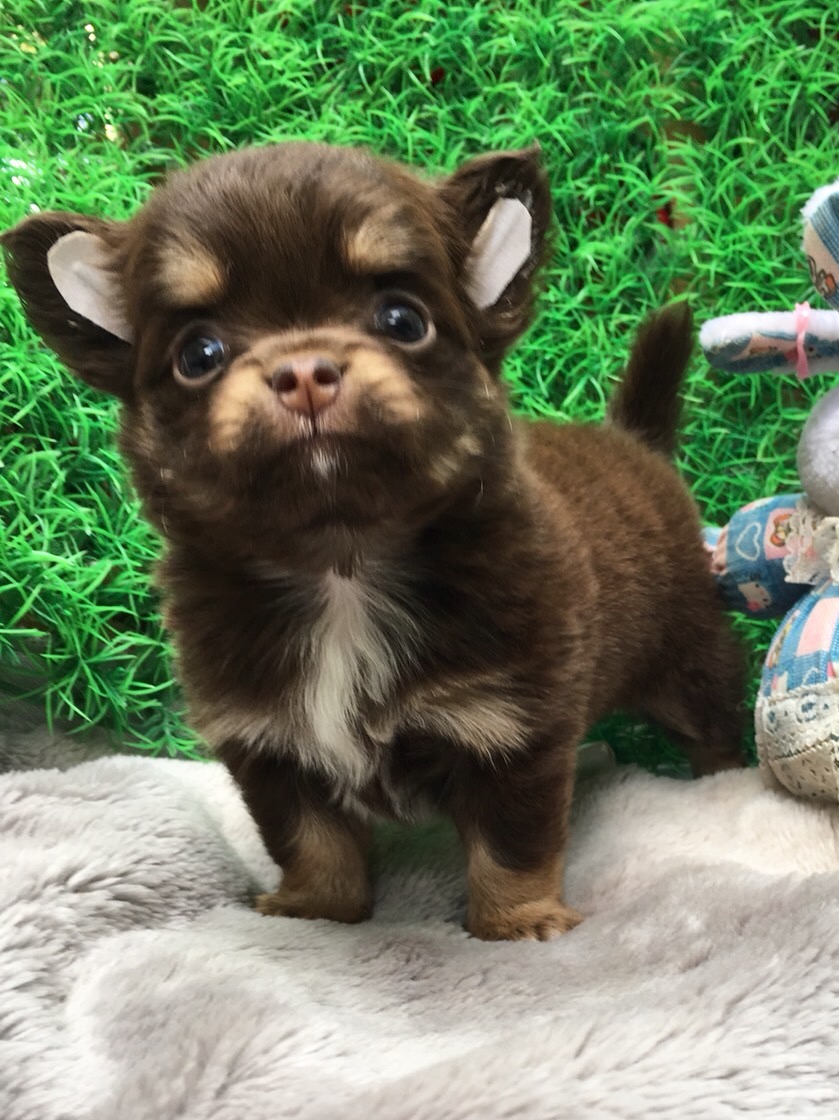 2 พี่น้องชิวาวาขนยาวสีชอคแทน หน้าหมีๆขนแน่นๆสุดน่ารัก