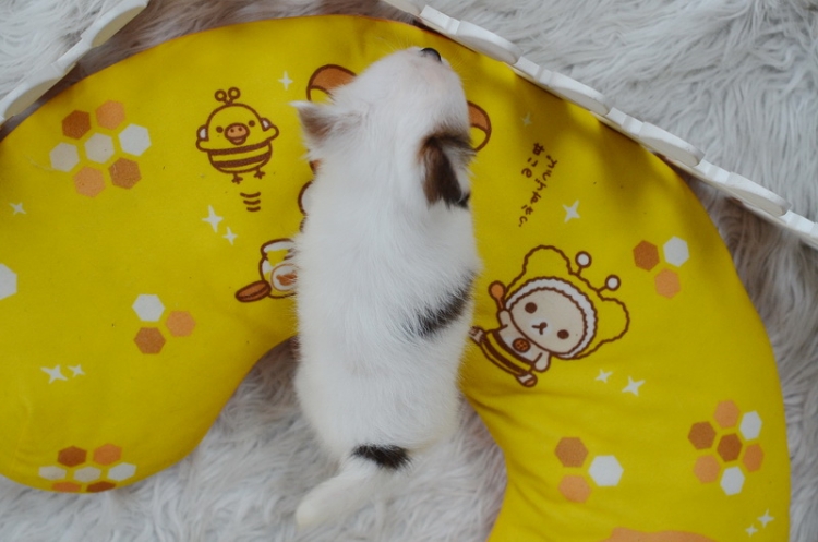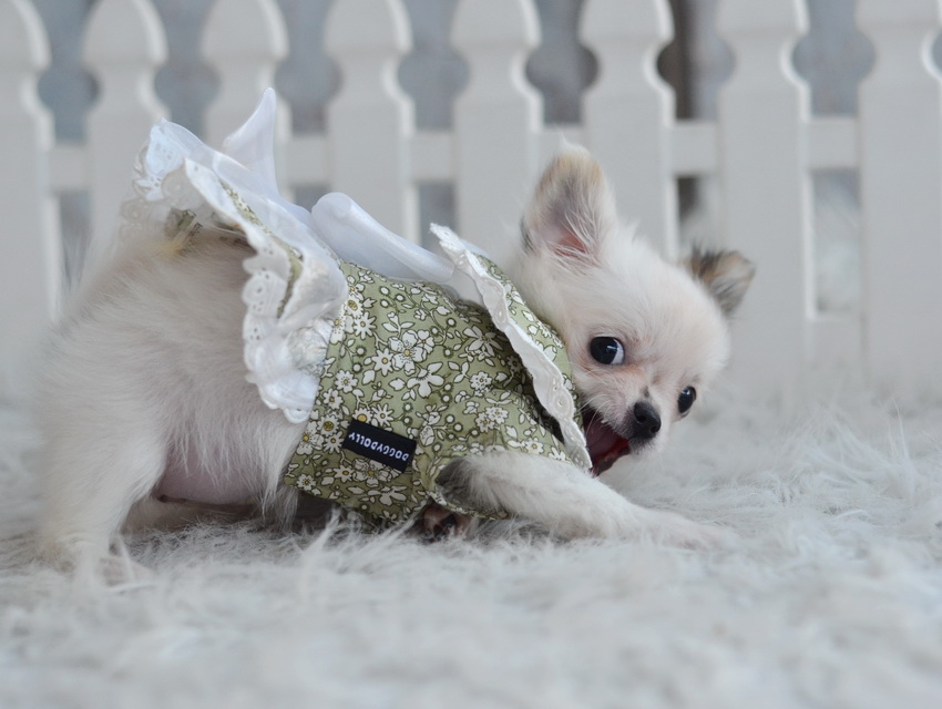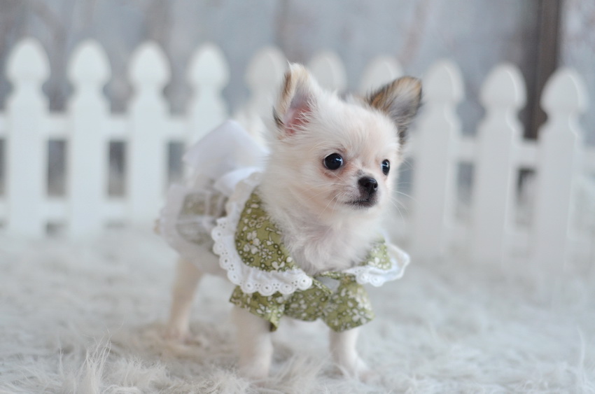 ชิวาวาเพศเมีย ขนยาว สีขาวน้ำตาล ราคา 5900