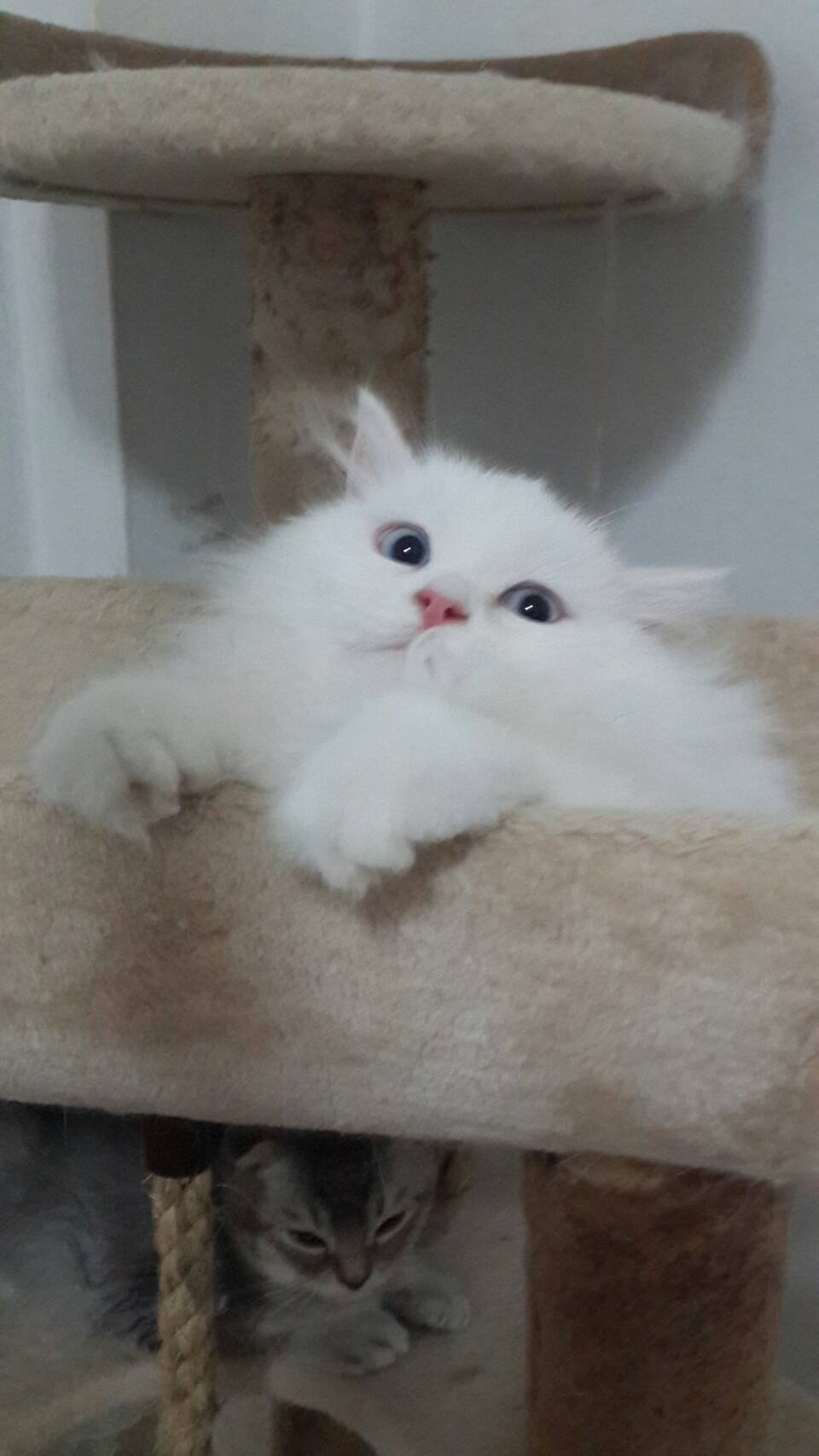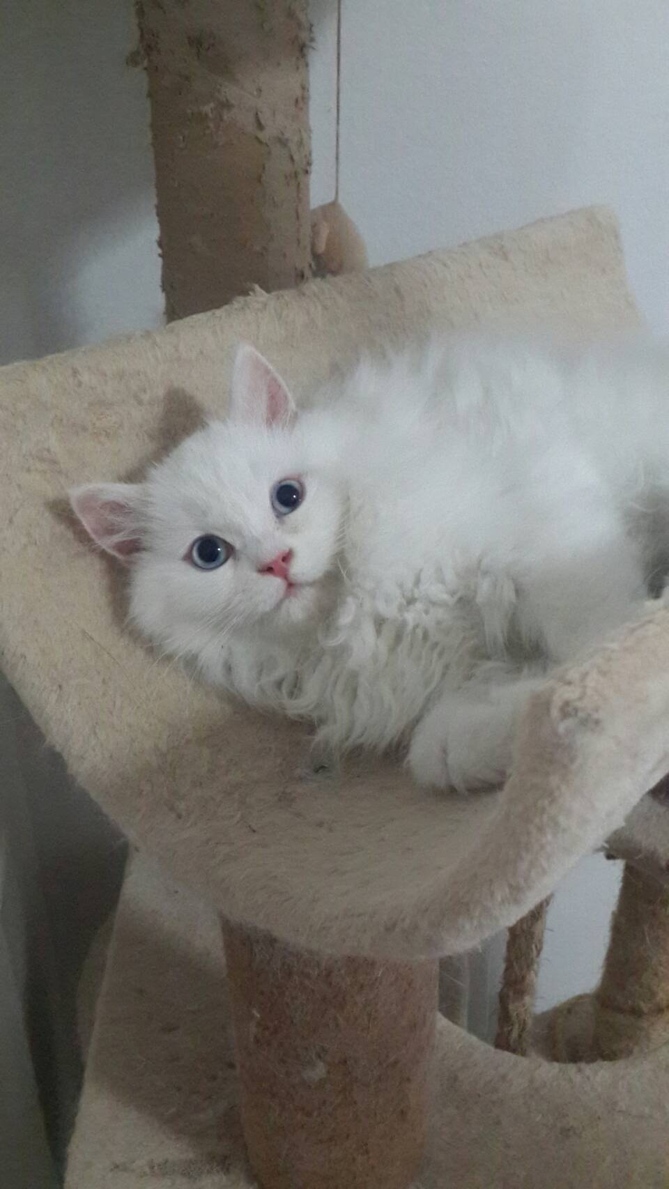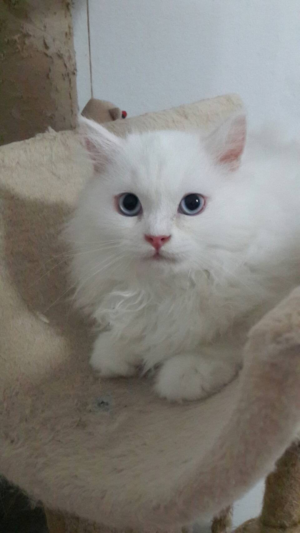 ขายscottish foldสีขาว หูตั้ง ตาฟ้า ขนยาว อายุ3เดือน
