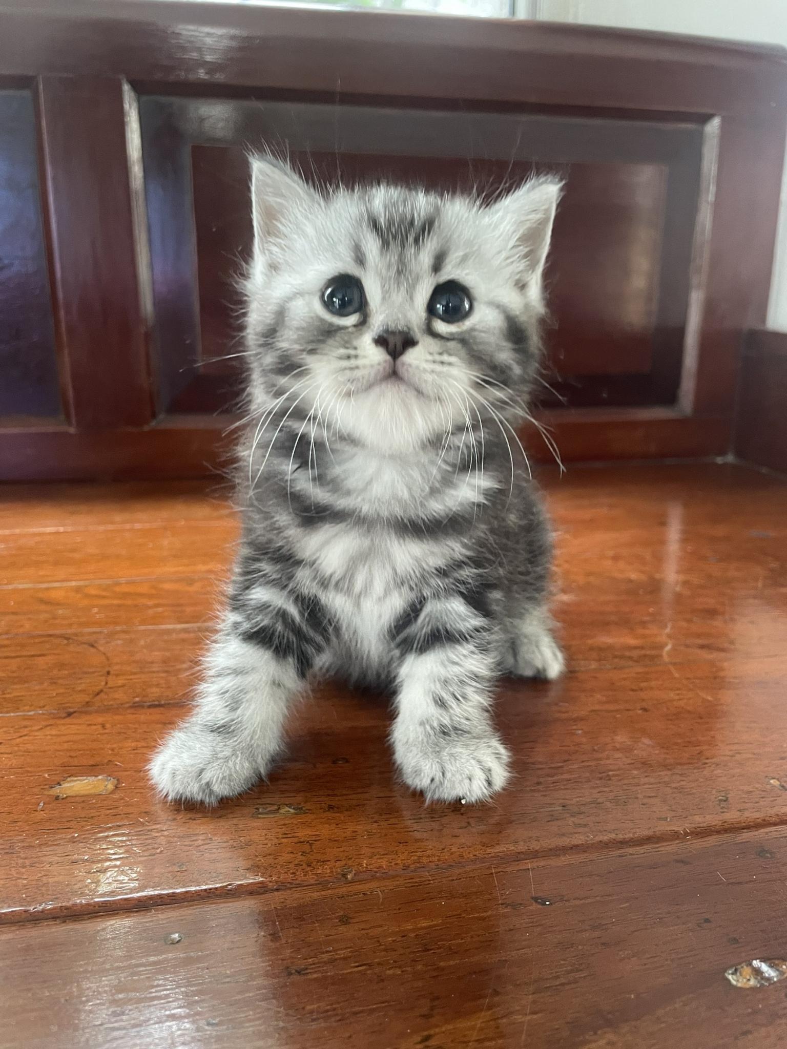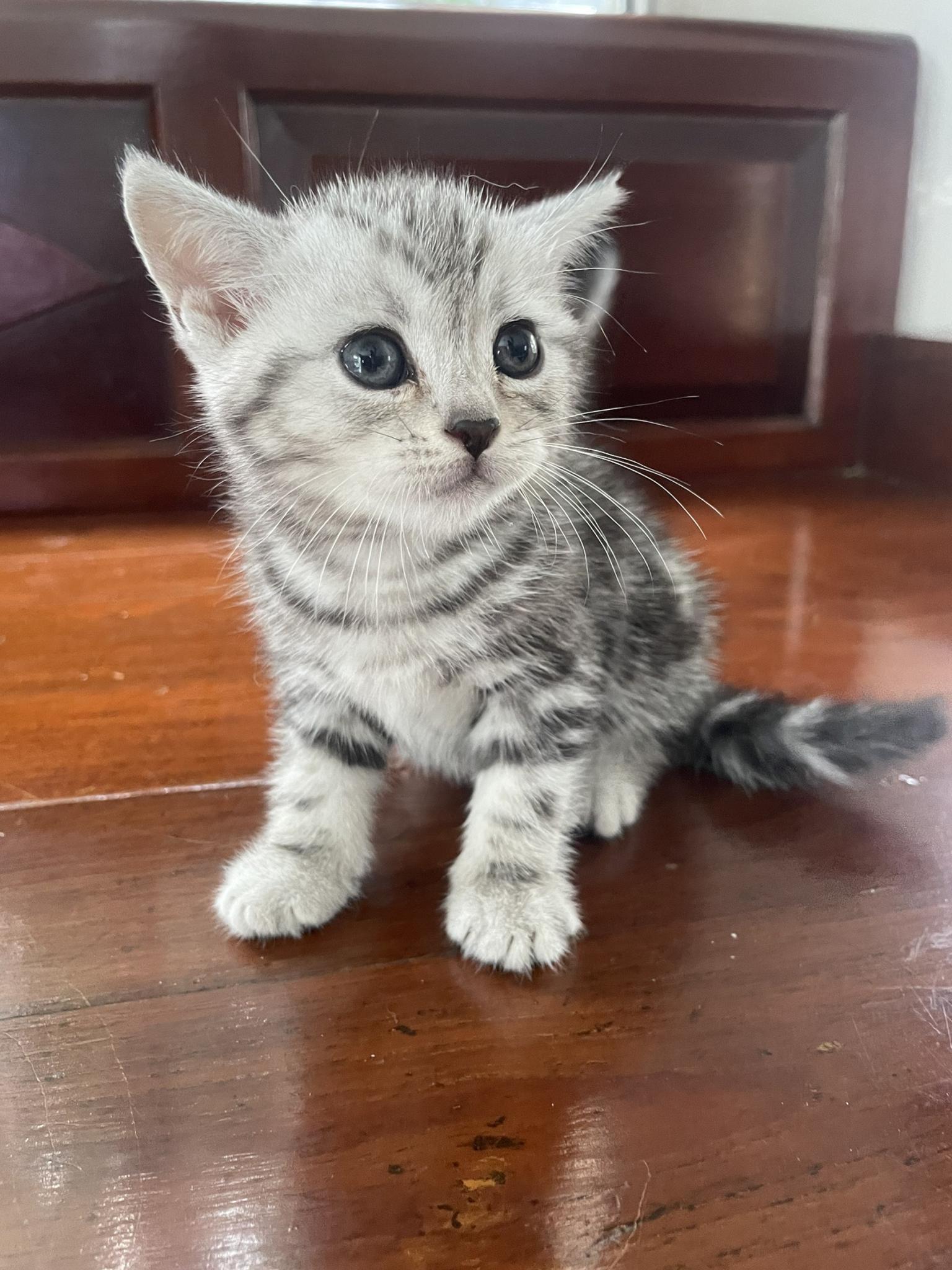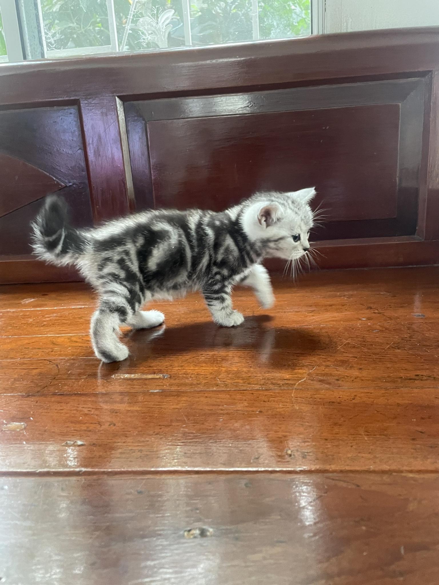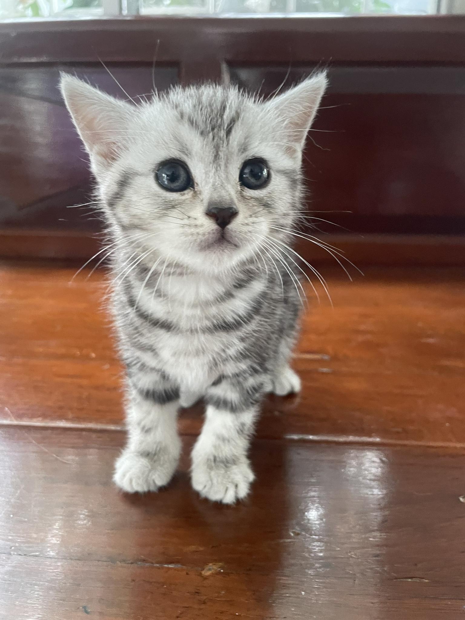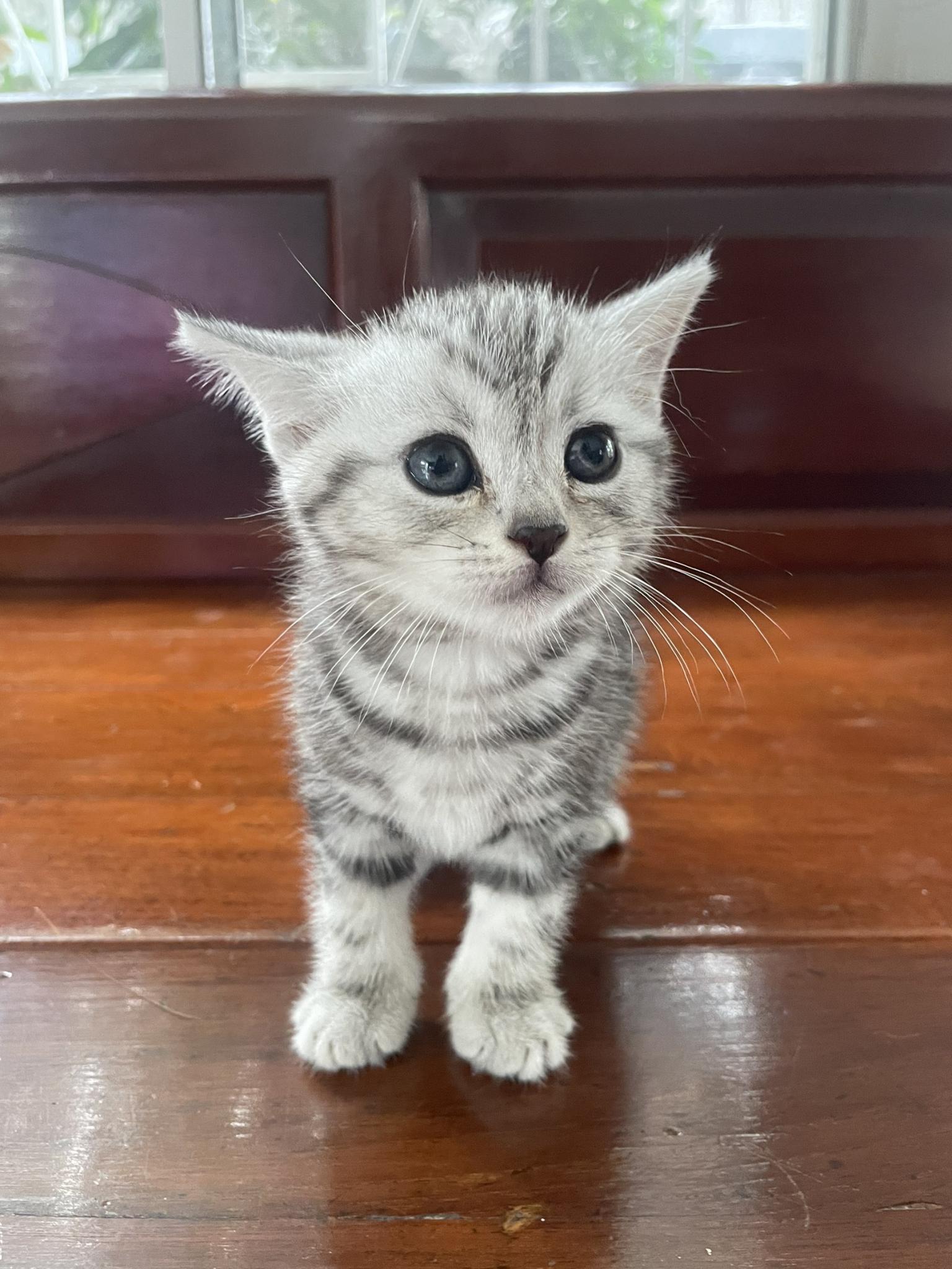 อเมริกันช็อตแฮร์แท้ ราคา 4,900 บาท อายุ 2 เดือน (เกิด 4/10/21) น้องอ้วน หน้าบาน หัวโต เท้าใหญ่ ขนหน