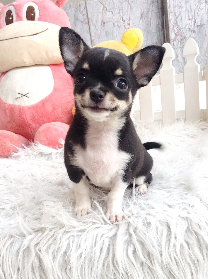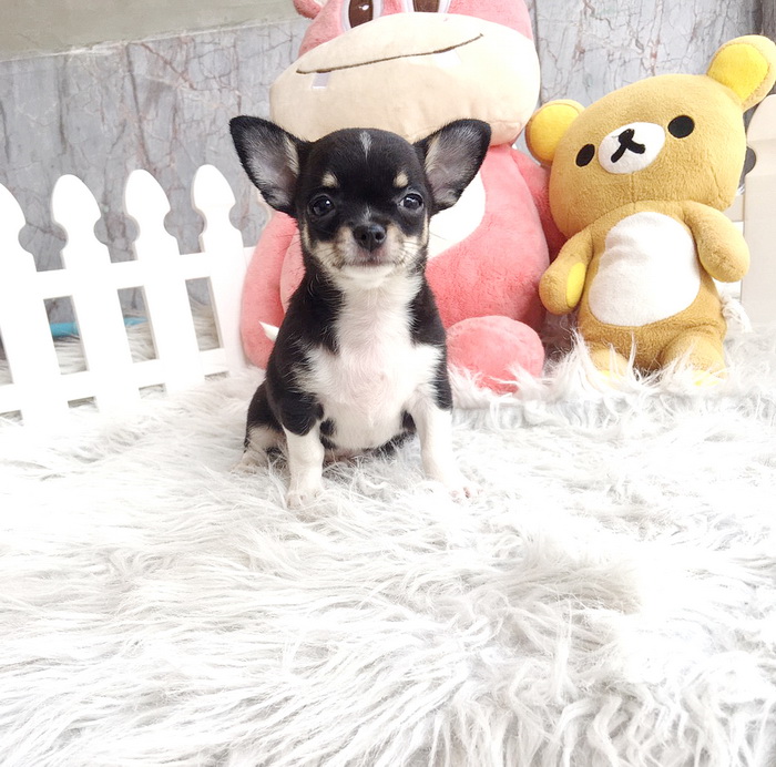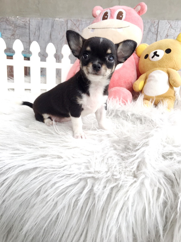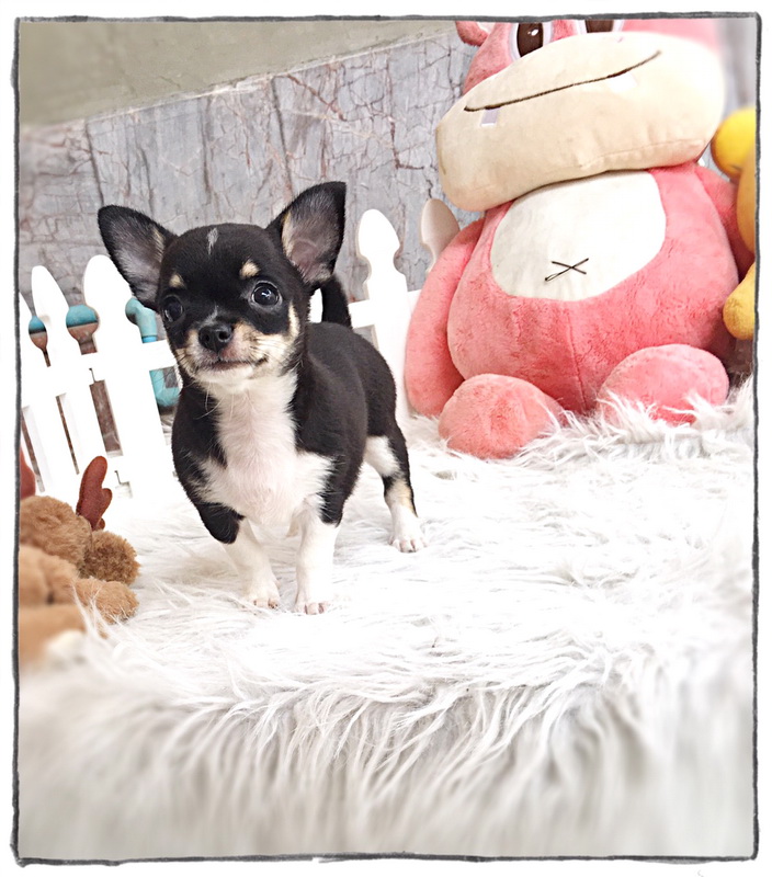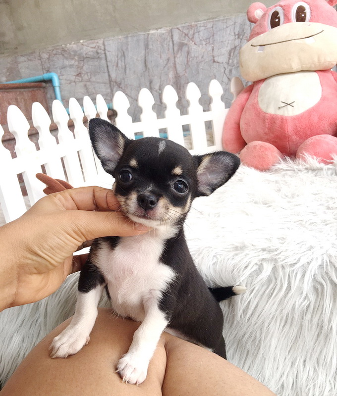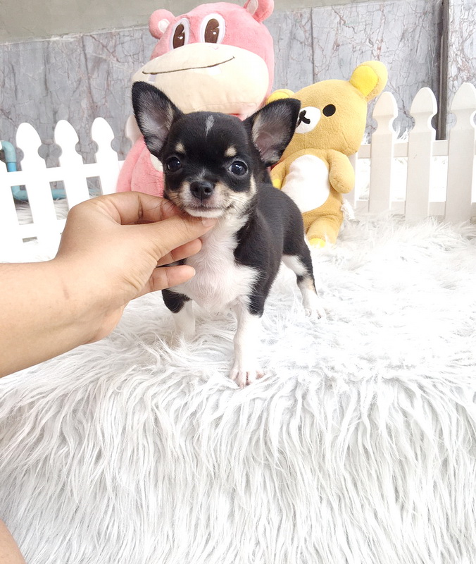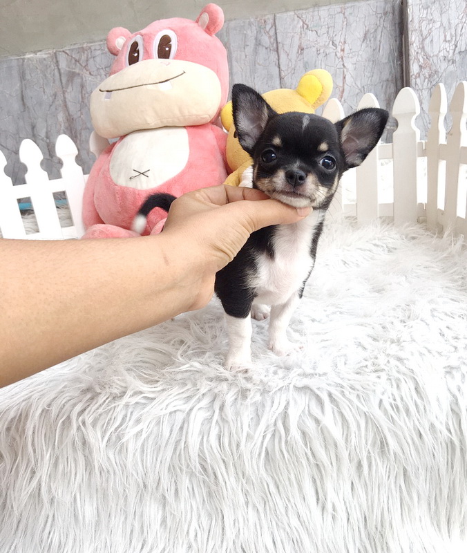 ★^-^*★ WWW.WOWWCHIHUAHUA.COM★ ^-^*★."น้องขนุน" ชิวาวาเพศเมีย ขนสั้น สีแบลคแทนไวท์มาร์ก 8500