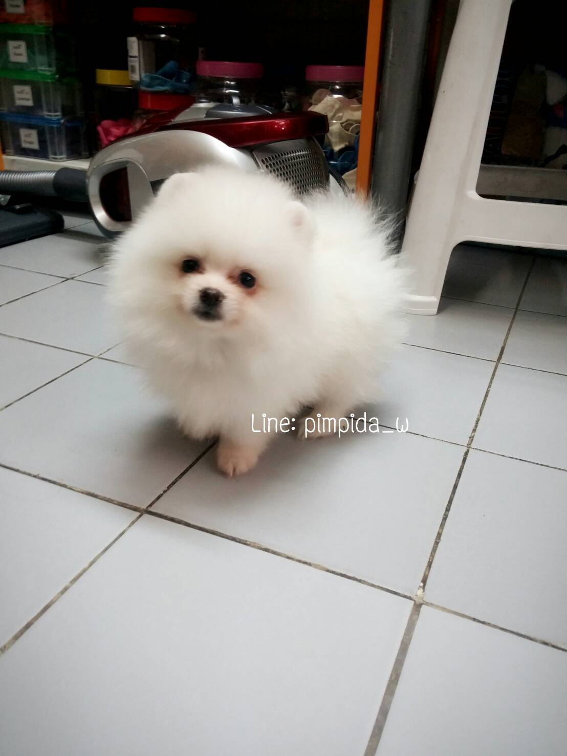 น้องปอมเมอเรเนียน สีขาว เพศผู้ มีใบเพ็ด