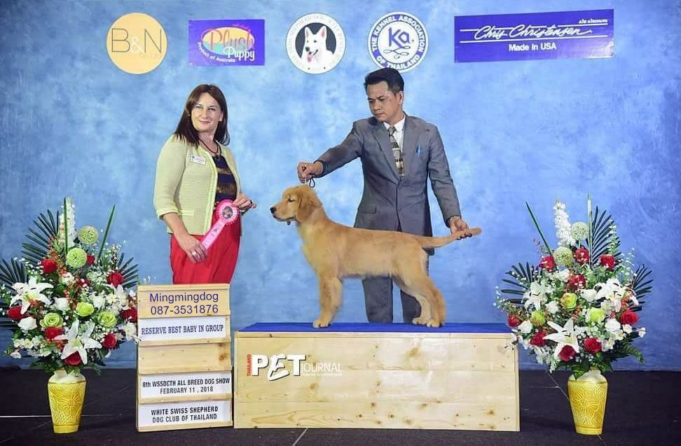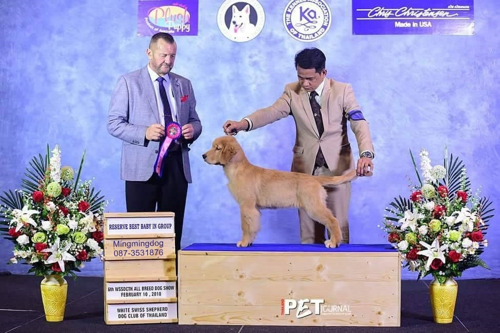 (แบ่งขาย) โกลเด้น เพศเมีย อายุ 4เดือน ประกวดเรียบร้อย ได้รับตำแหน่ง 4 สนาม ตามรูปแต่เอามาลงไม่หมด พ่อแม่แชมป์ทั้งคู่ ราคา 45,000 บาท งดต่อสนามหน้าจะลงอีกหากลงแล้วได้แชมป์ราคาขึ้นตามการประกวดและตำแหน่ง หายากมากราคานี้ค่าเทรนกับประกวดก็หมดไปเยอะล๊า ขอคนรักชอบหมาสวยงาม ทักมาโลด อยู่กรุงเทพจัดส่งฟรี!! รับประกันโรคลำไส้-ไข้หัด 15 วัน สนใจสอบถาม 087-3531876 line : mingmingdog