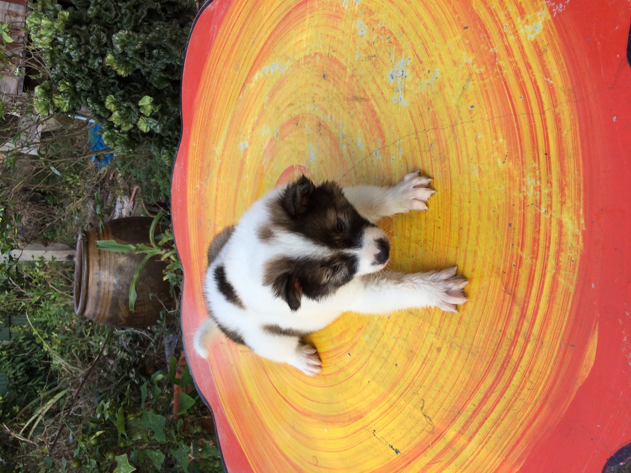 ลูกสุนัขบางแก้วสีขาวเทาโครงสร้างดีจิตประสาทเยี่ยมขนแน่นๆF1พร้อมย้ายบ้านทำวัคซีน+ถ่ายพยาธิแล้ว1เข็ม