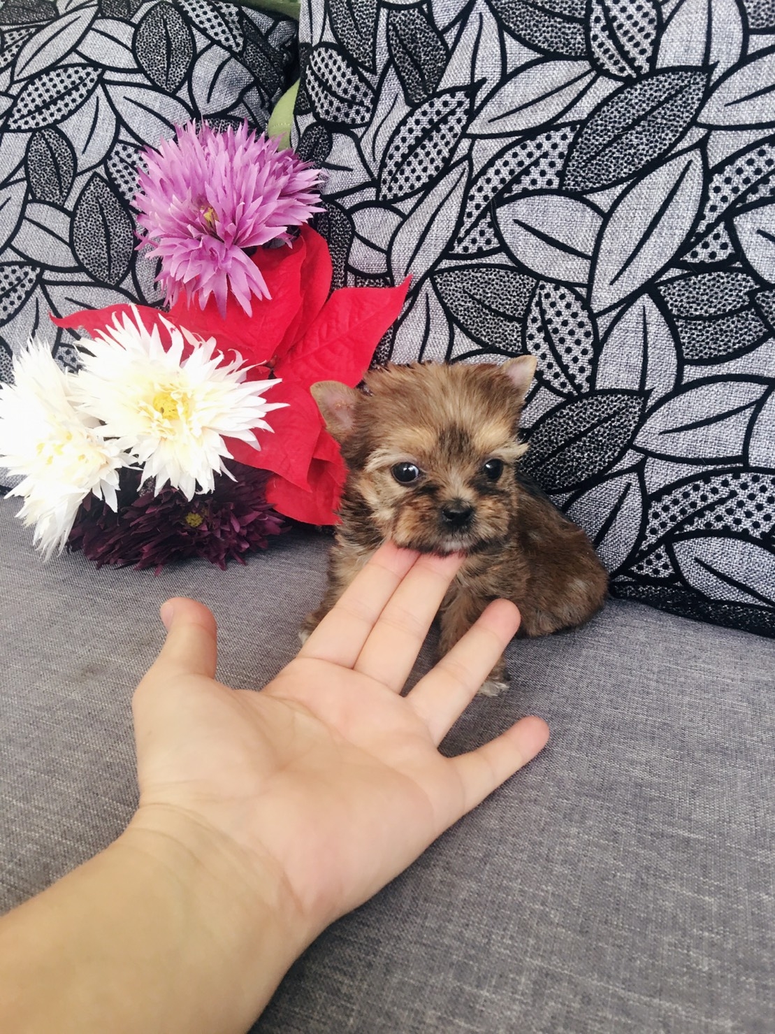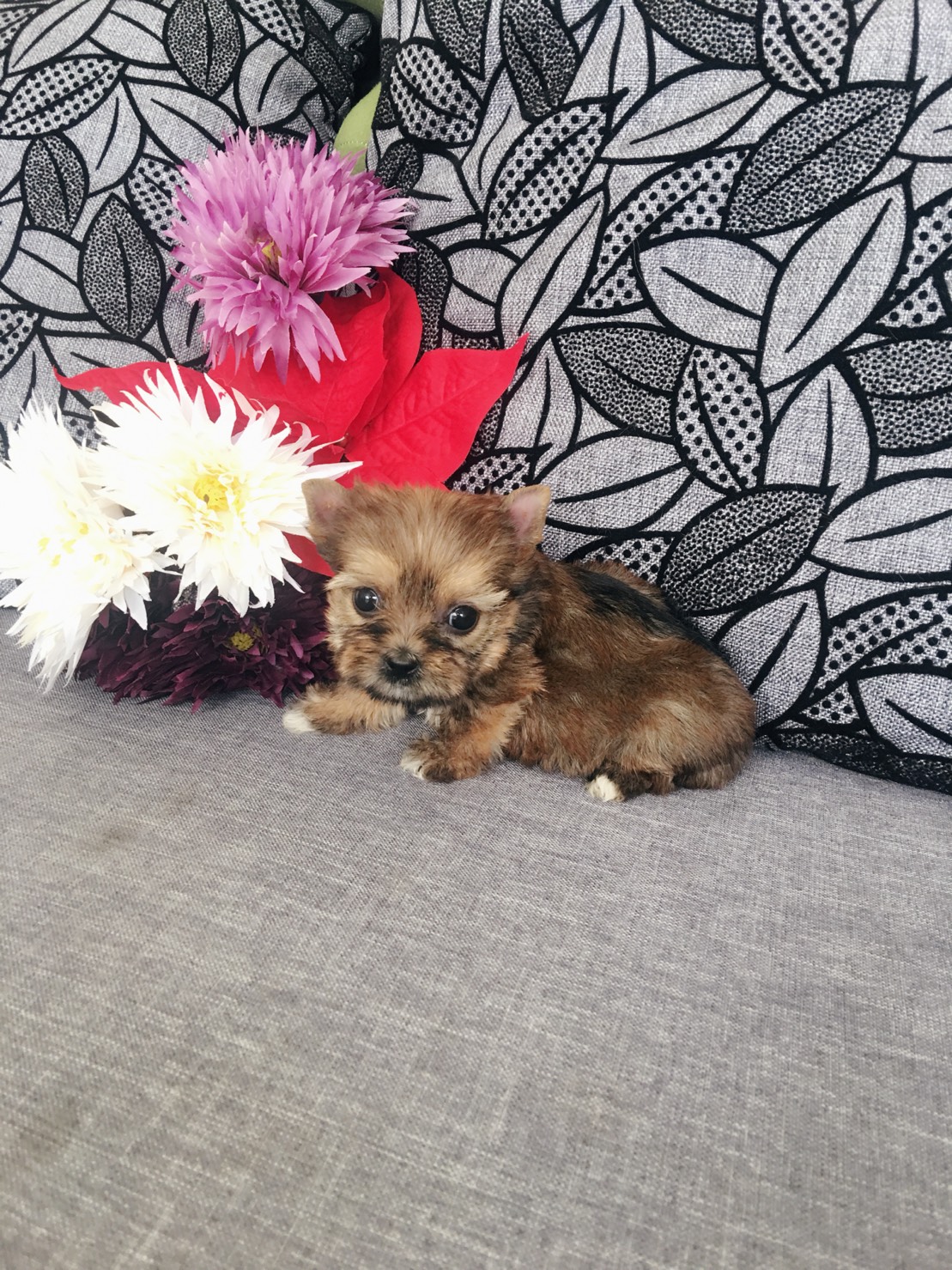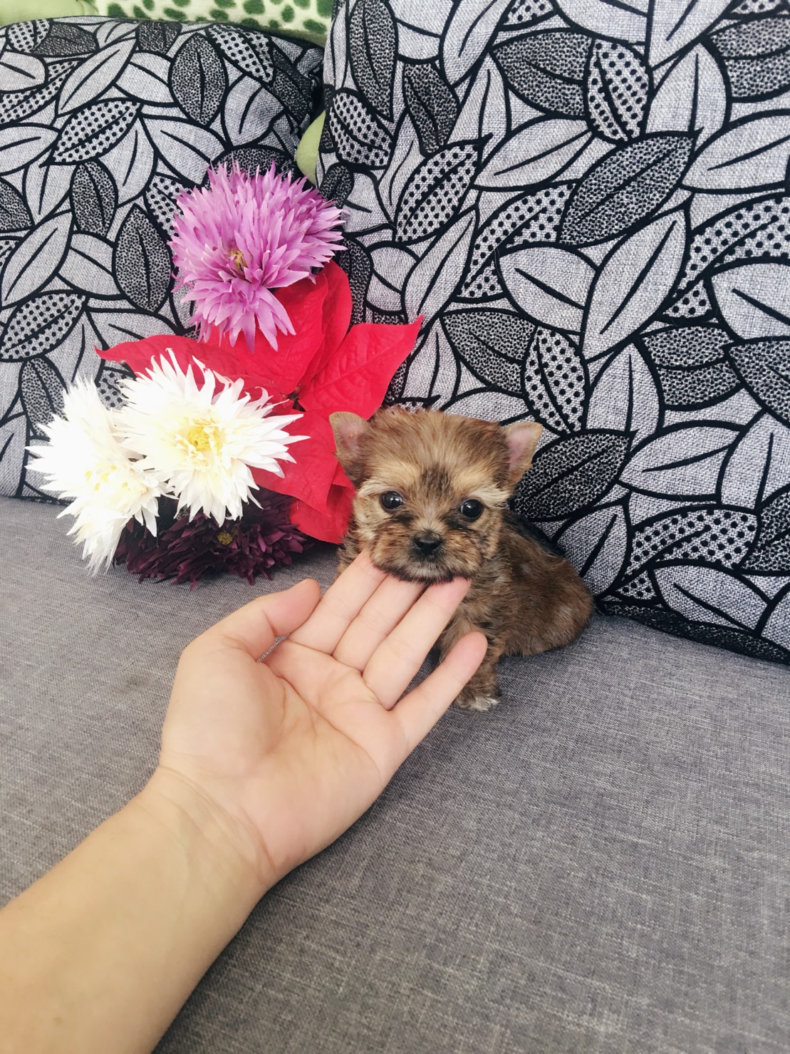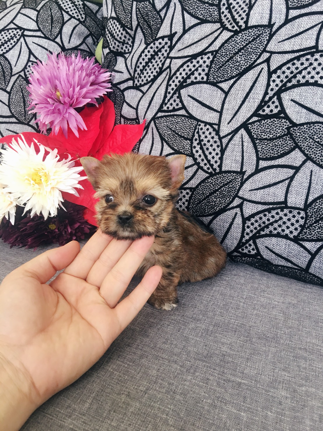 ขายลูกยอร์คเชียสีน้ำตาลทองเพศเมืยไซร์เล็กหน้าสั้นๆบี้ๆตัวเตี้ยตาโต