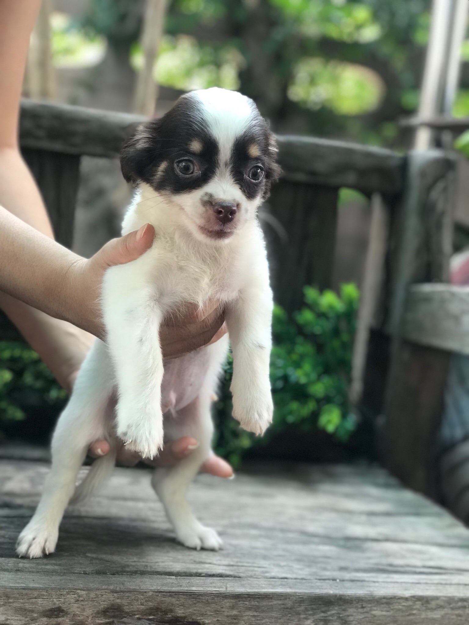 ชิวาวาเพศผู้สีขาวช็อคมีใบเพ็ดราคาแบ่งกันเลียง