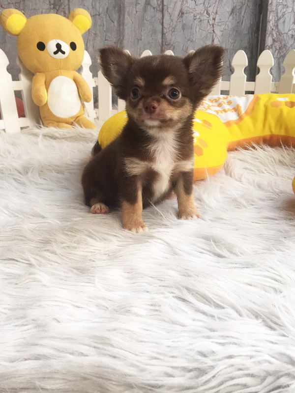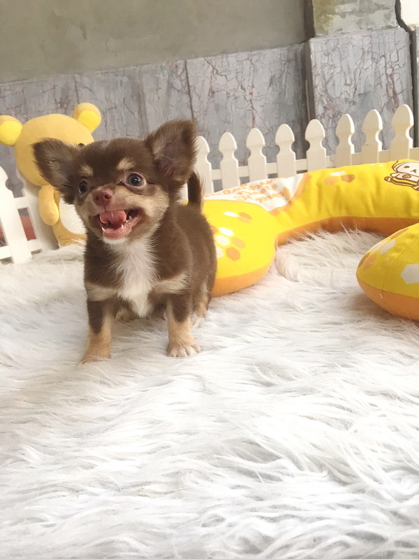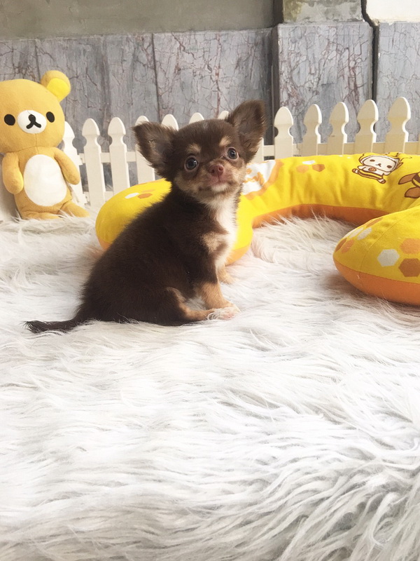 ชิวาวา เพศผู้ ขนยาว สีชอคโกแลตแทน ราคา 9500 บาท