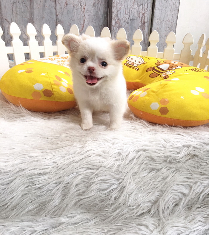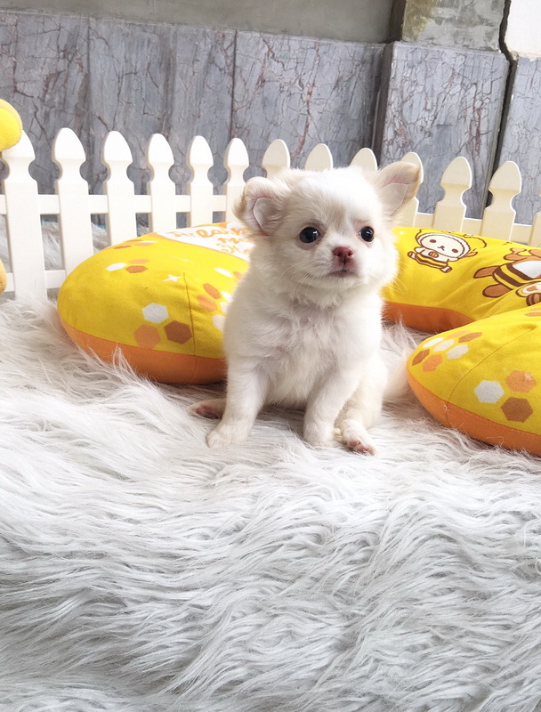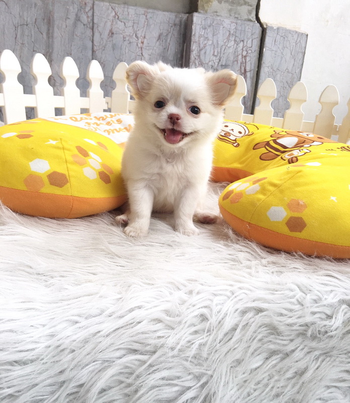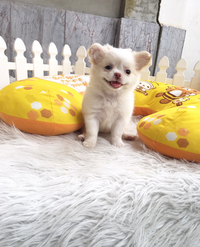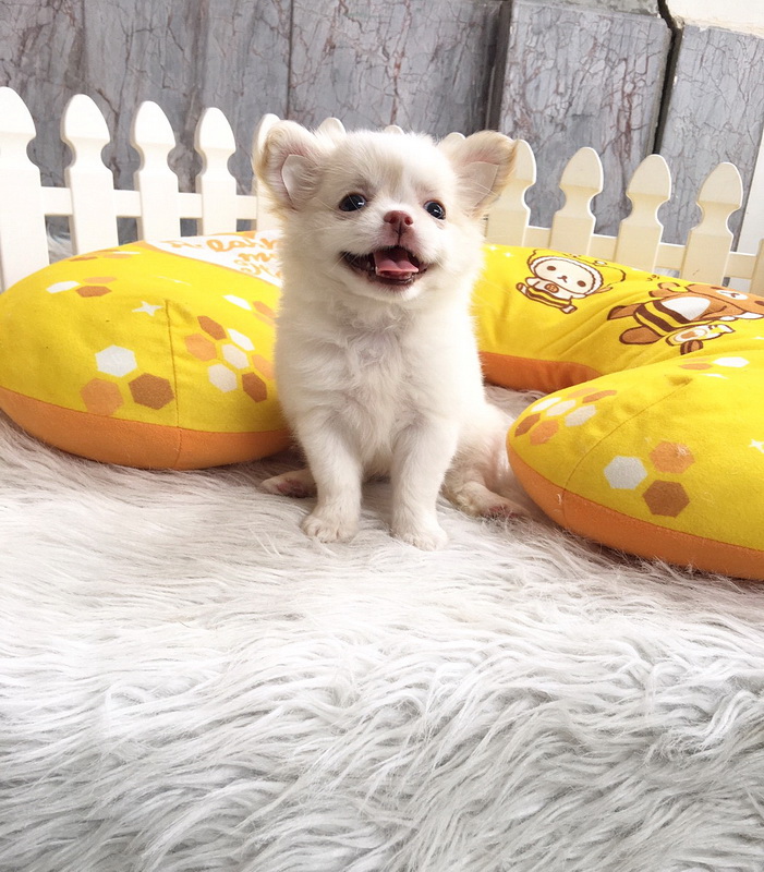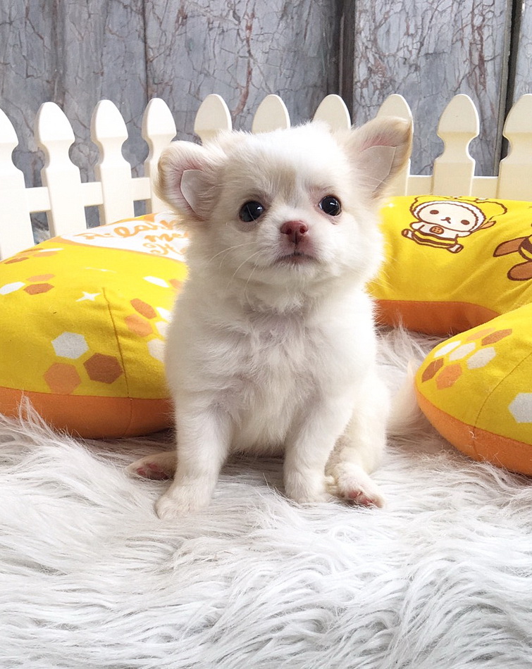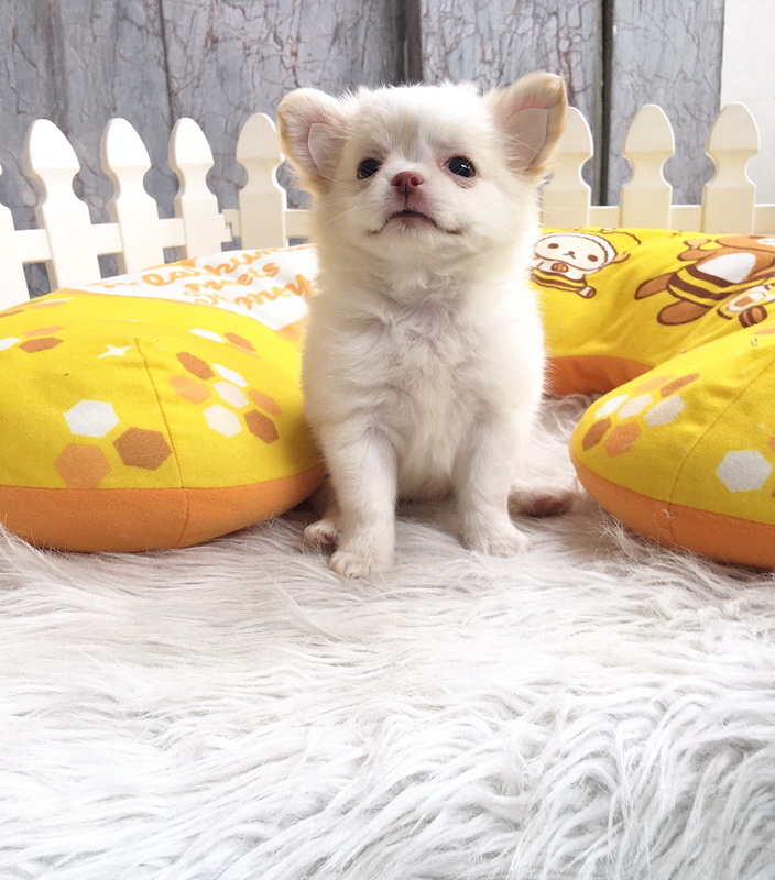 ชิวาวาเพศเมีย ขนยาว สีขาวครีม ราคา 9500
