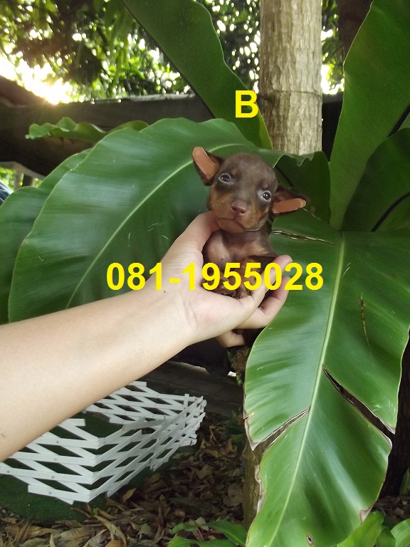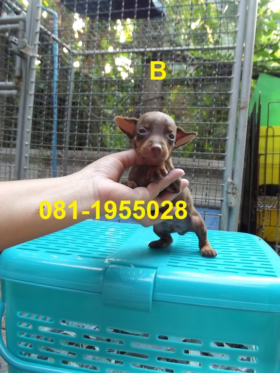 มิเนียเจอร์( หมากระเป๋า ) สวย สีช็อคโกแลต 2 ตัว หายาก โทร.081-1955028