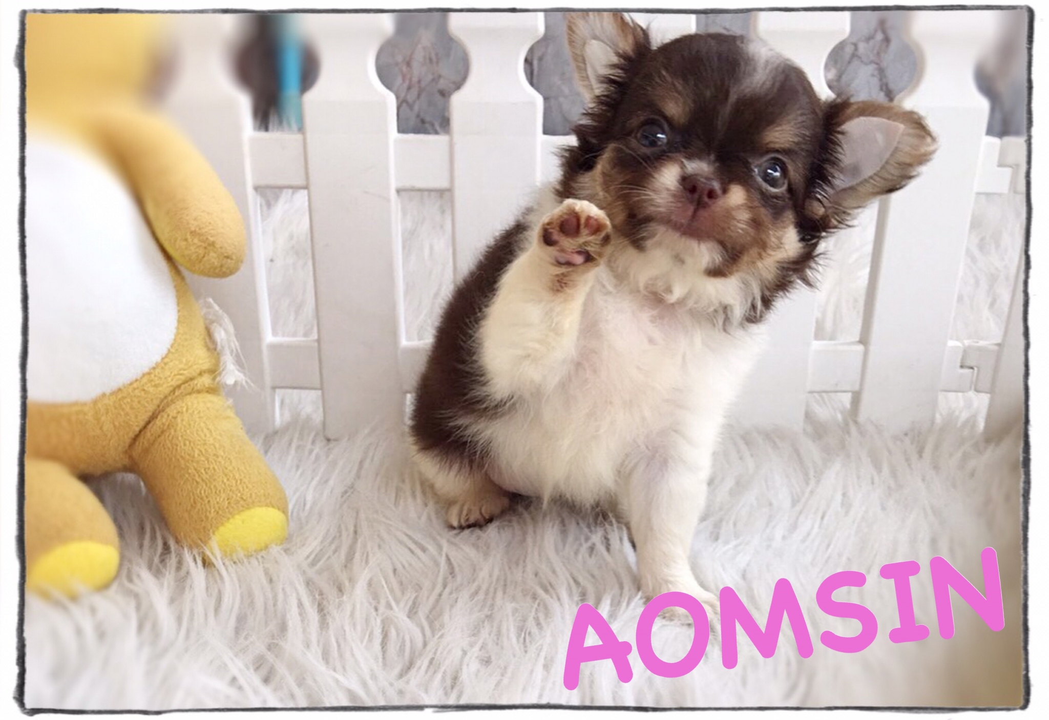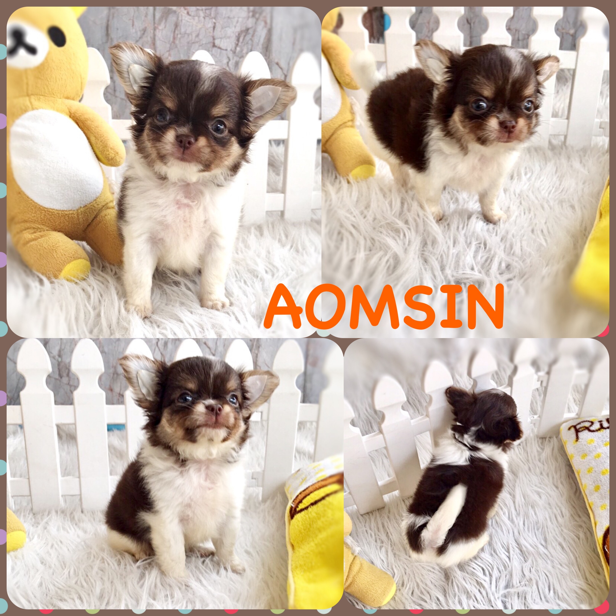 2 ชิวาวาเพศเมียสีชอค/ขาวชอคขนยาว แบ๊วๆเลยค่ะ รับประกันสุขภาพ