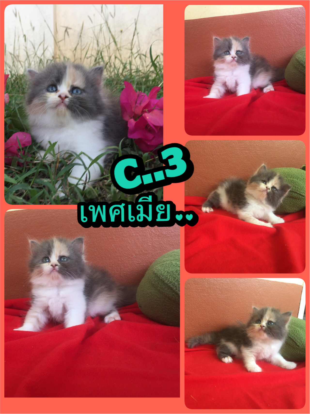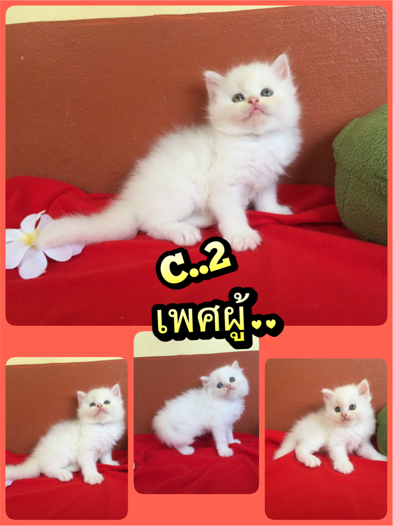 น้องแมวน้อยเปอร์เซียคุณภาพสวยไม่มีตำหนิขนแน่นๆฟูๆแถมความซนและความขี้อ้อนไปด้วยน้องๆมีทั้งผู้และเมียนะคะทานอาหารเม็ดได้เก่งและเข้ากระบะทรายได้คล่องแล้วคะสนใจสอบถามได้เลยคะที่0820436412ต่างจังหวัดเรามีบริการส่งนัคะ