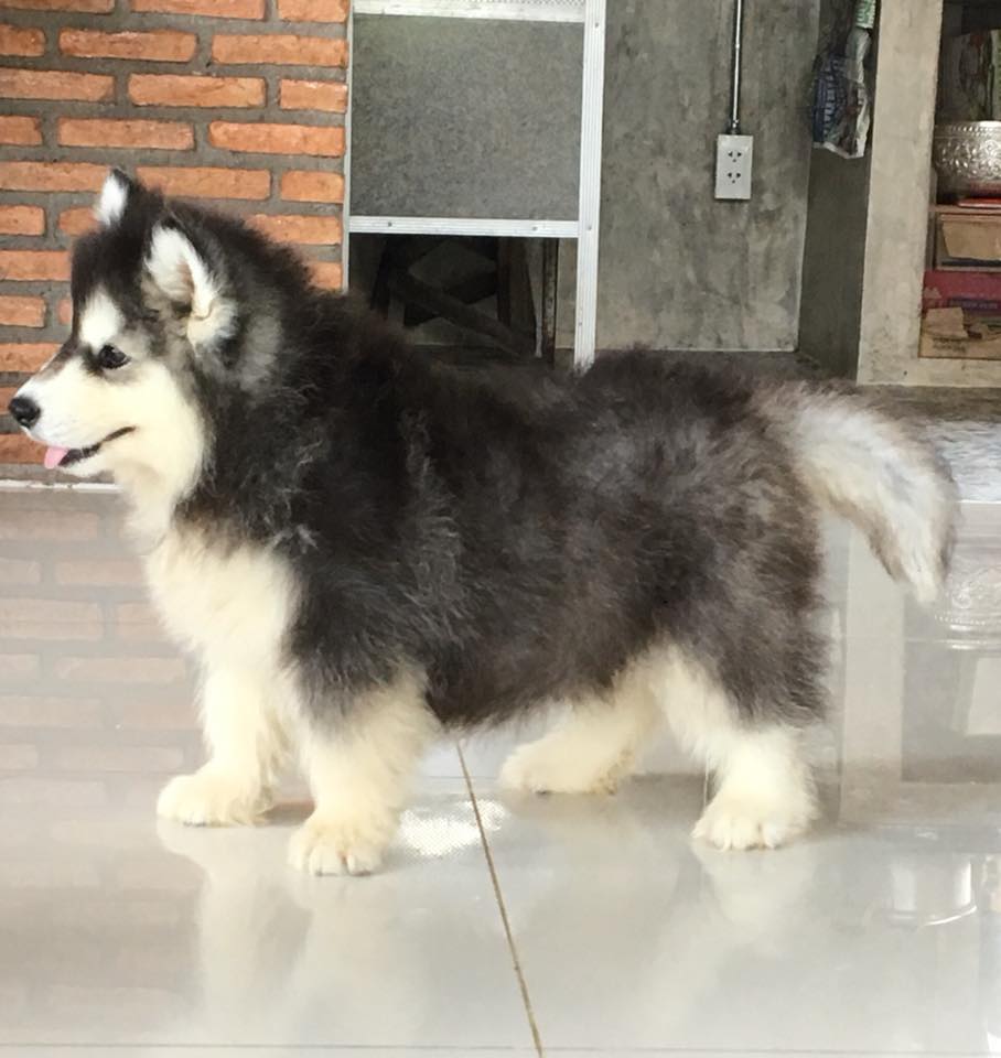 น้องหมาไซบีเรียน เพศผู้ ขาวดำ ตาดำ โครงสร้างใหญ่ พร้อมจัดส่ง