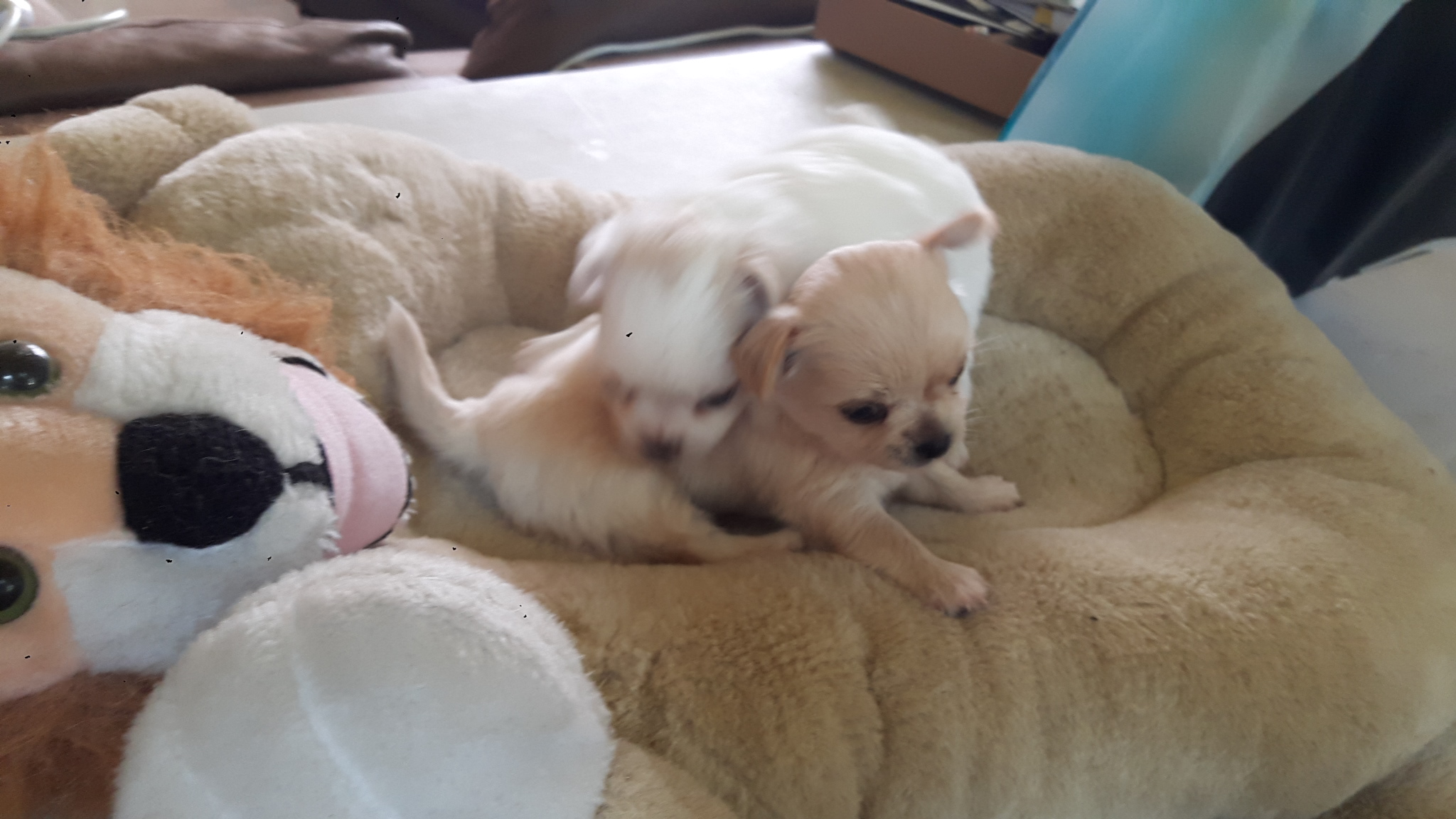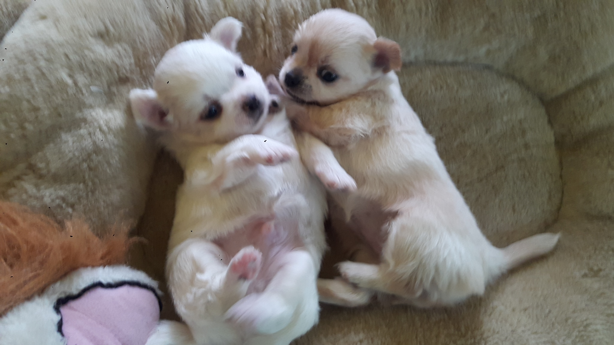 น้องเป็นชิวาวาไซร์เล็กขนยาวเลี้ยงเองในบ้านค่ะอายุ40วันพร้อมย้ายบ้านค่ะมีอาหารเม็ดให้พร้แมถ่ายพยาธิ ตัวผู้สีขาว 1 ตัวเมียสีฟรอน์ 1ตัว ดูตัวจริงได้อยู่กทม.0868924888