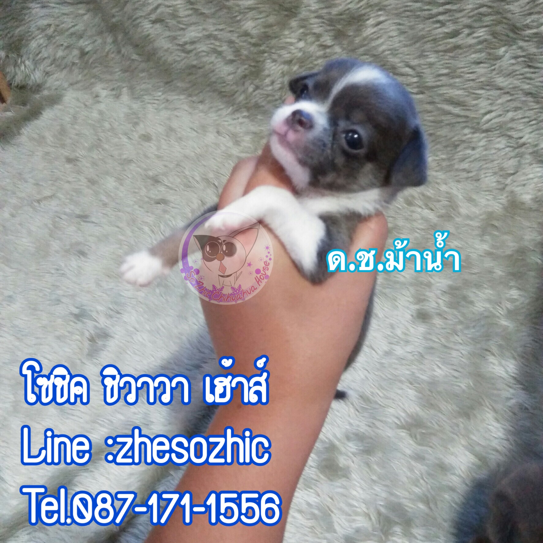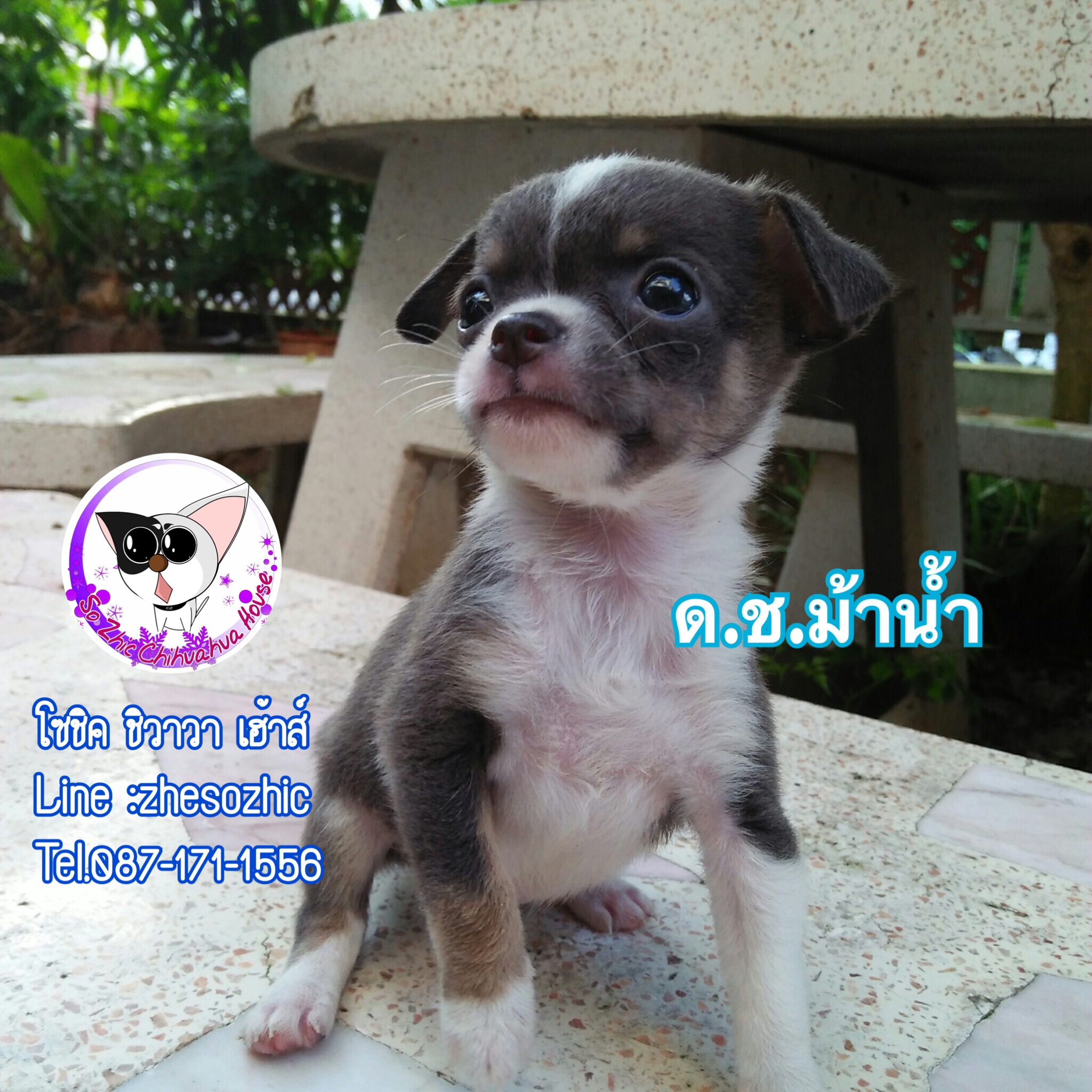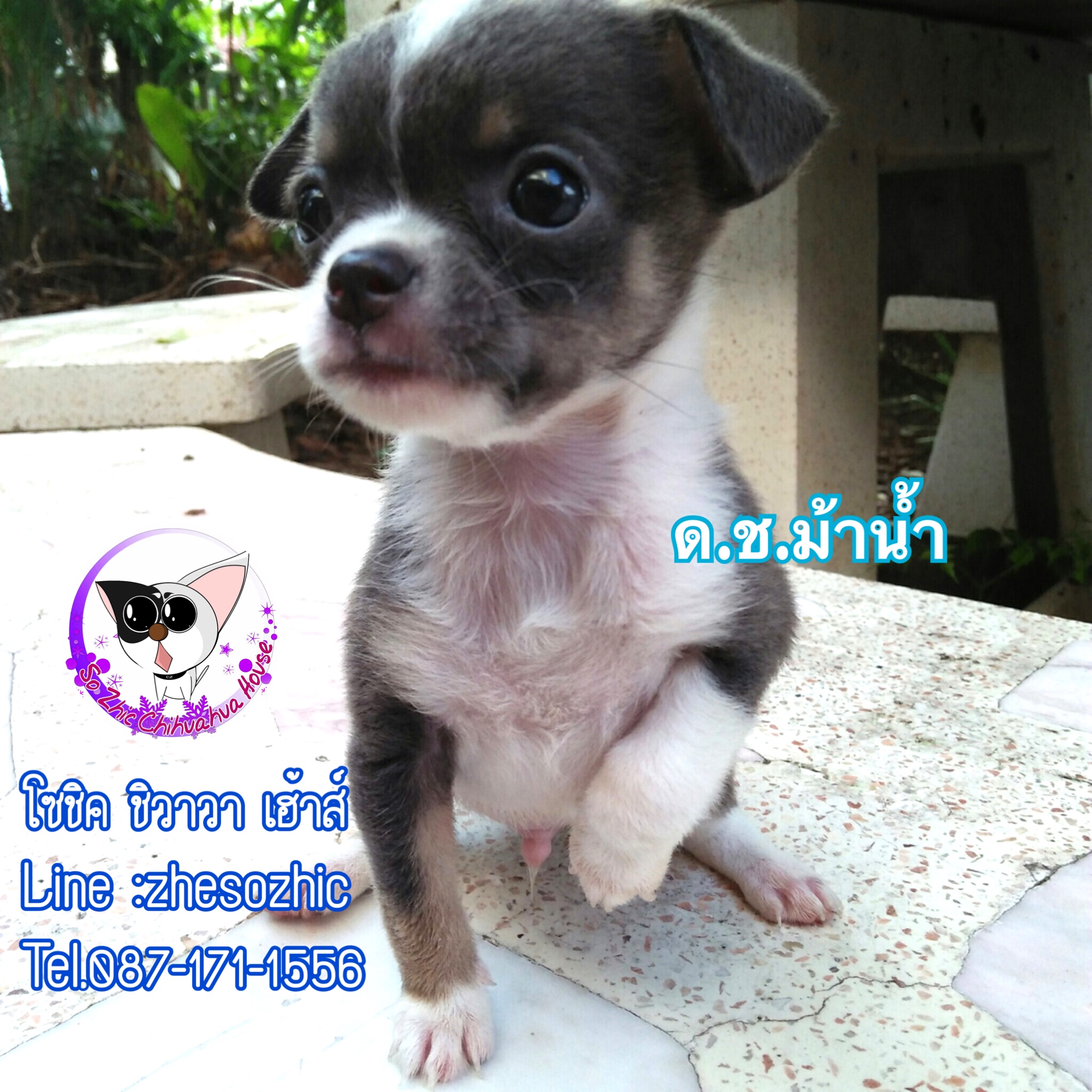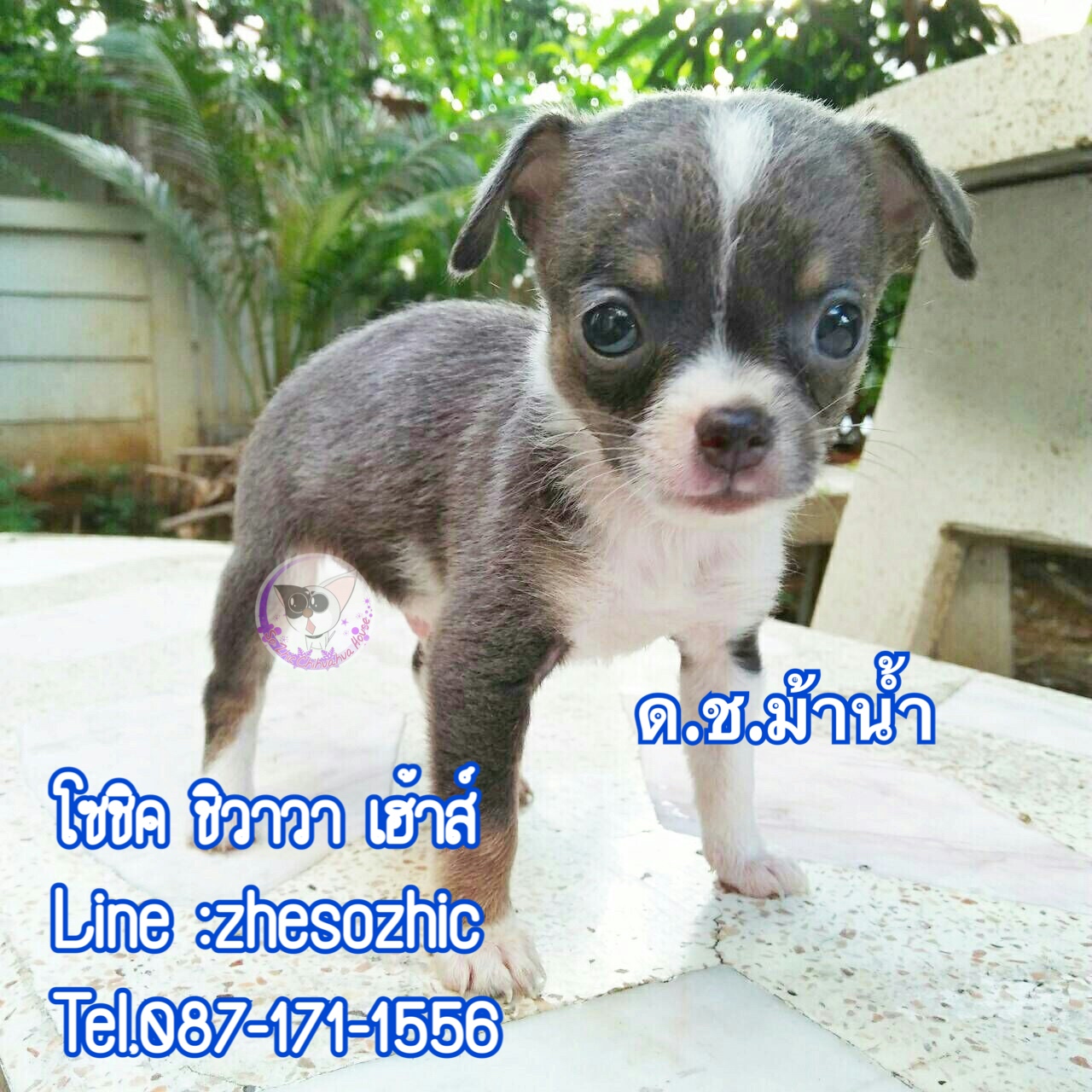 ชิวาวา เพศผู้ ขนสั้น สีเทา-ขาว