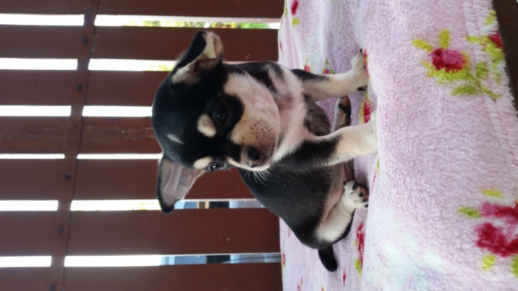 ชิวาว่าแบล๊คแทนสายช้อคฯ ขนสั้น มาร์คสวย ผู้1 เมีย1 อายุ45วัน ไซส์เล็ก สนใจทักถามได้ค่ะ 098-824-1465