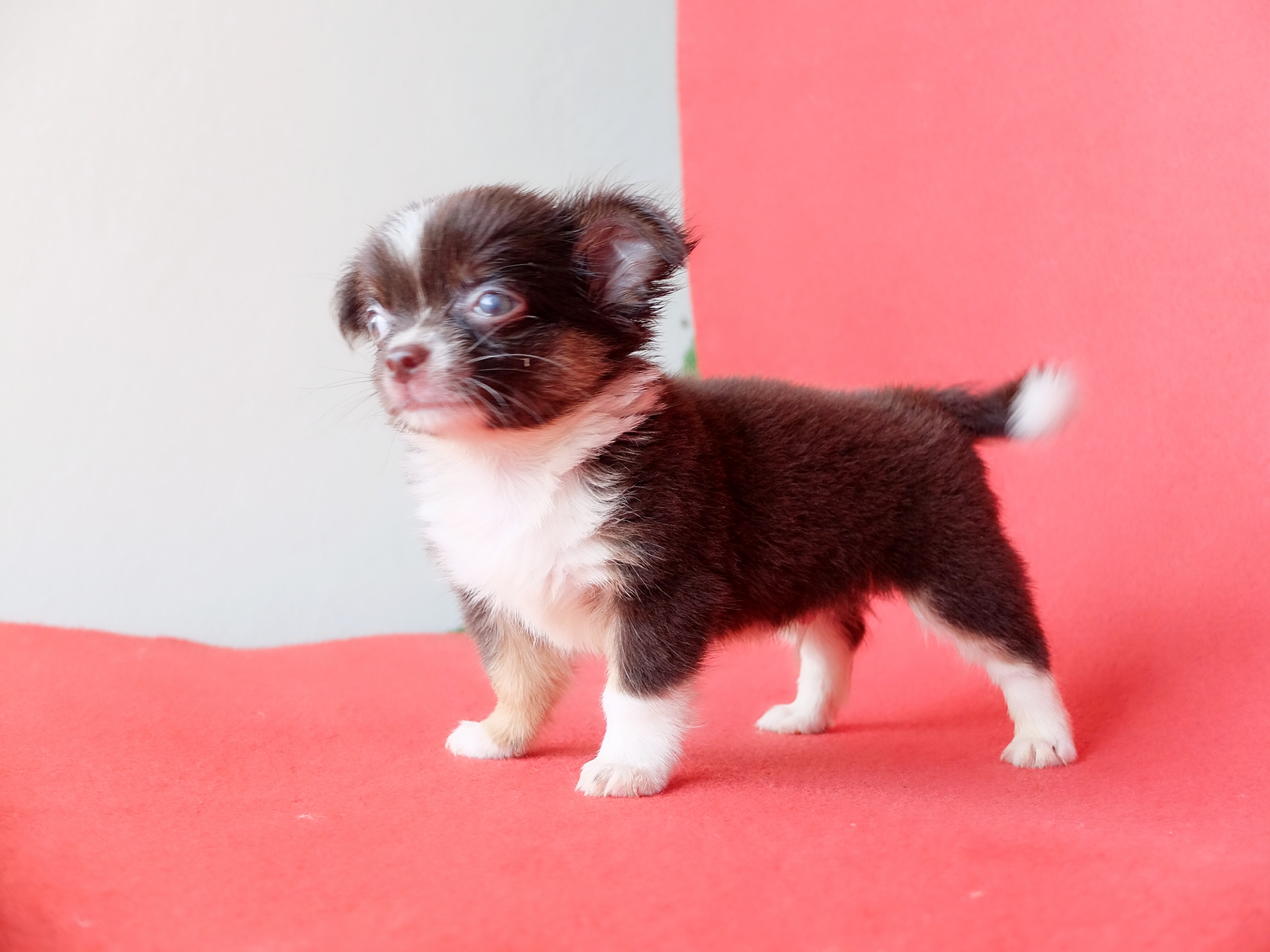 ชิวาวาขนยาว เพศผู้ น้องโกโก้ฟอร์มสวย สีขาวช๊อค เกรดประกวดอายุ2เดือน หย่านมแล้ว เรามีบริการส่งท้วไทยนะครับ