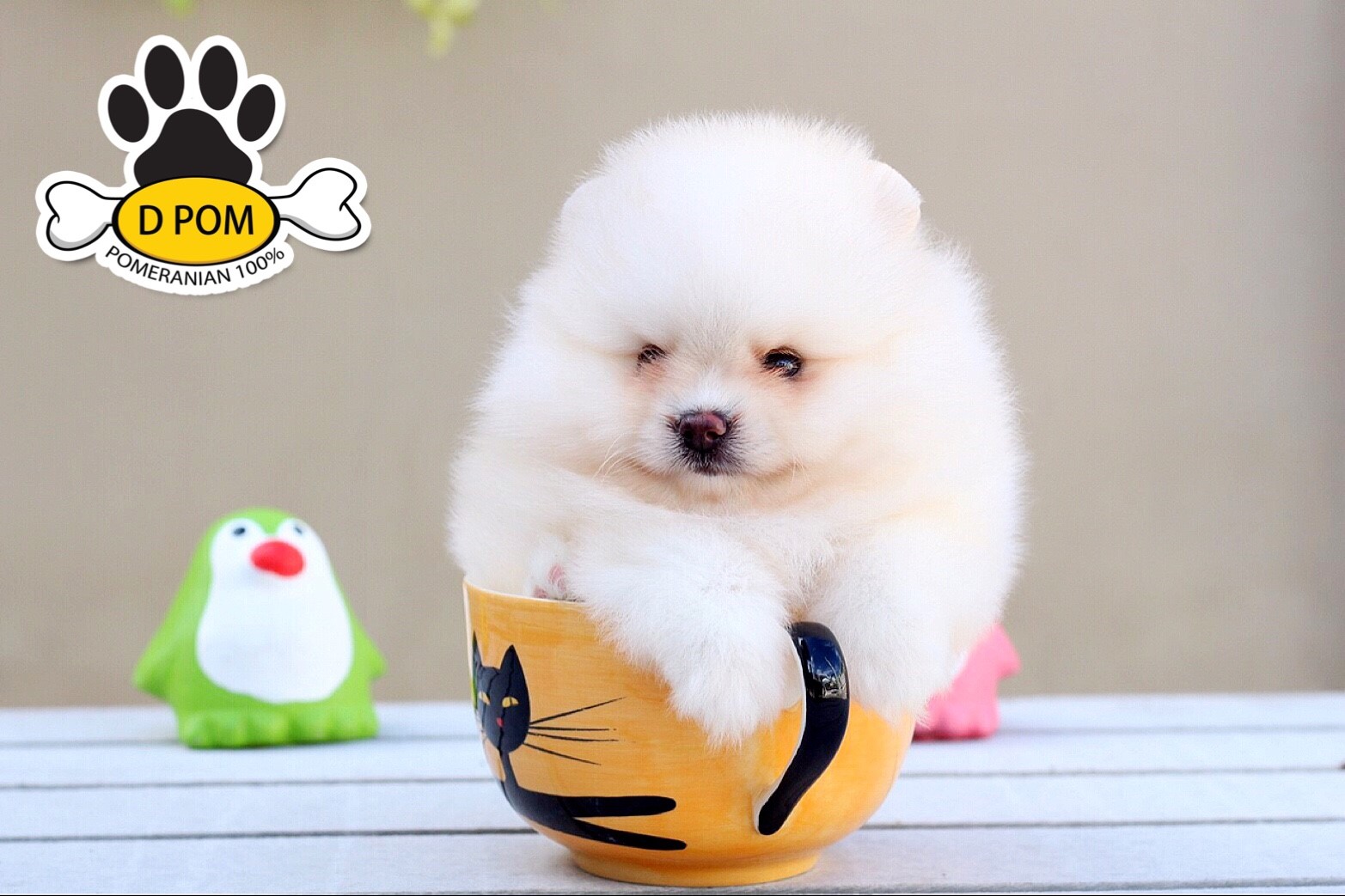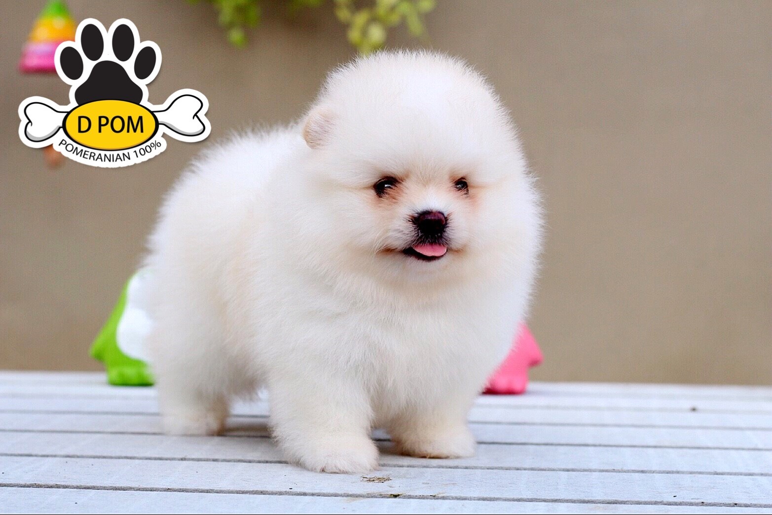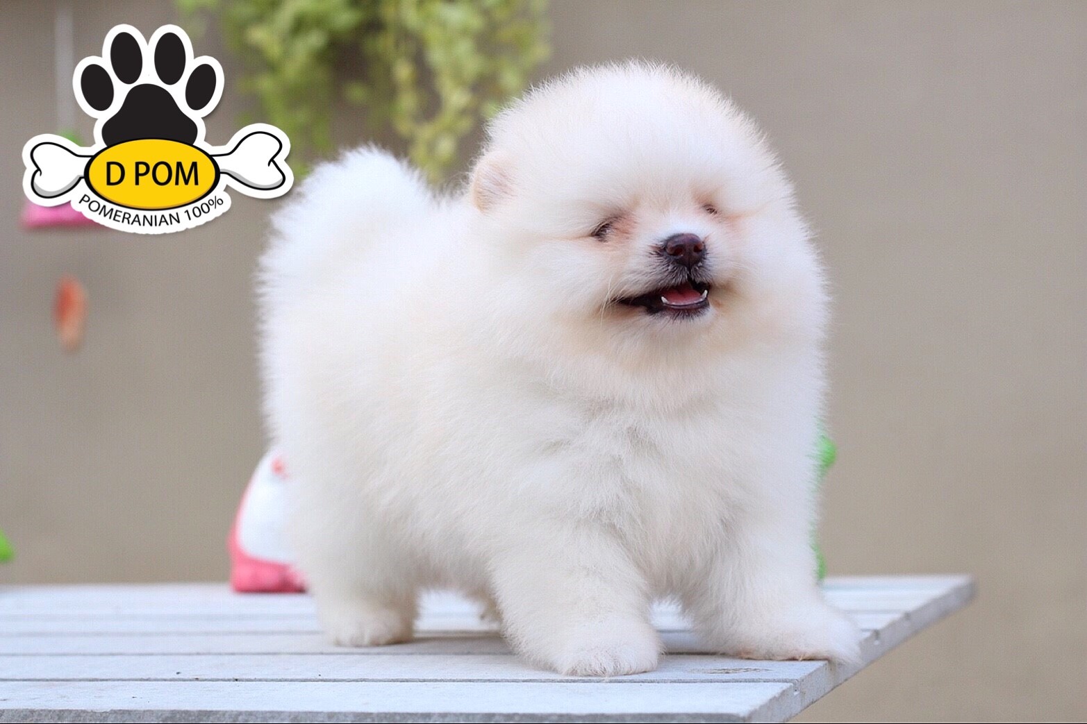 DPOM FARM ขายปอมหน้าสั้น ...น้องโบว์...เพศเมีย สีขาว ทีคัพ ทรงสวย หน้าสั้น ขนแน่นฟู
