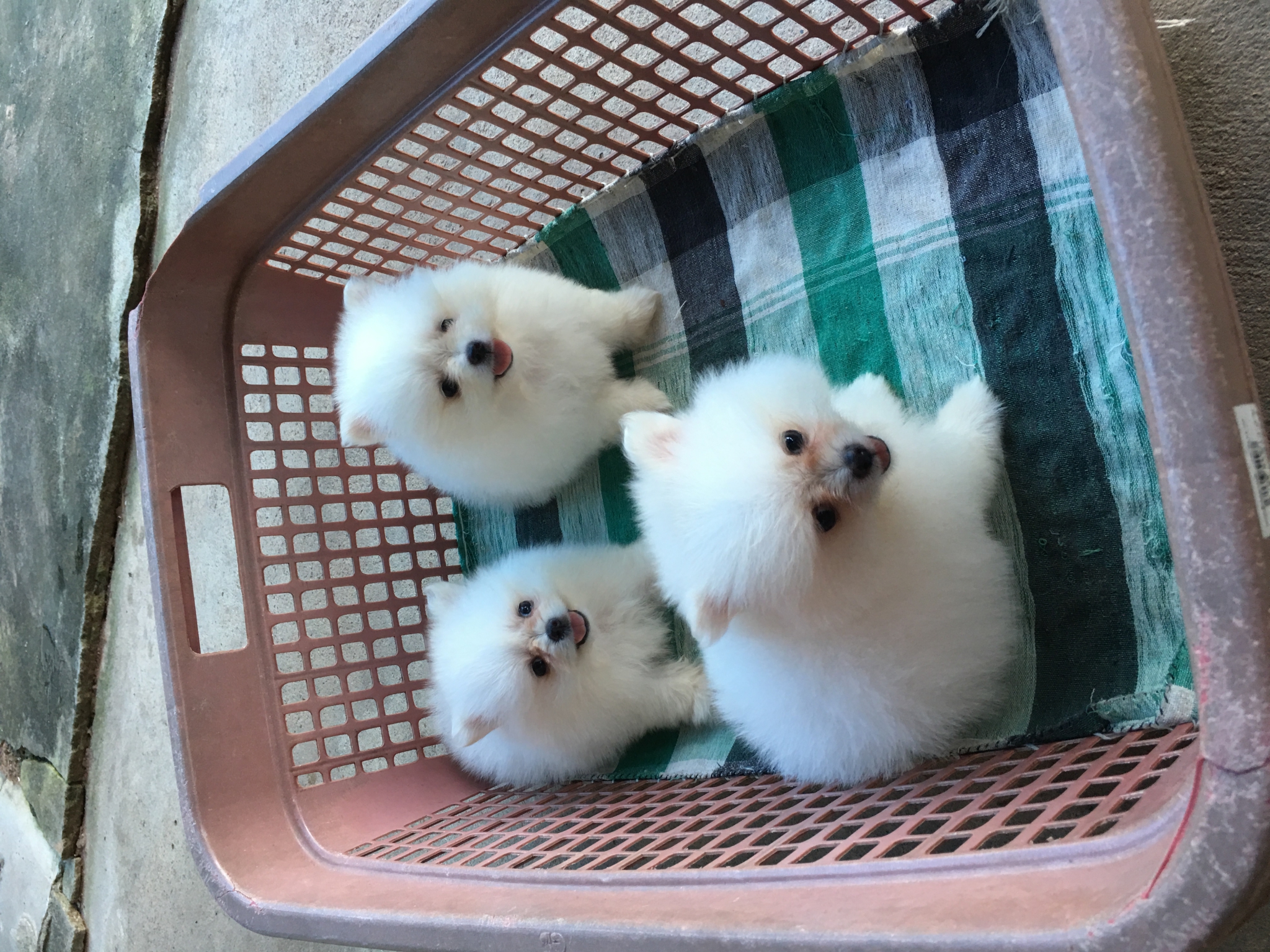 ขายปอมเมอเรเนียน สีขาว ราคาถูก เหมาคอก หรือแยกได้คับ ไม่มีคนเลี้ยงคับ