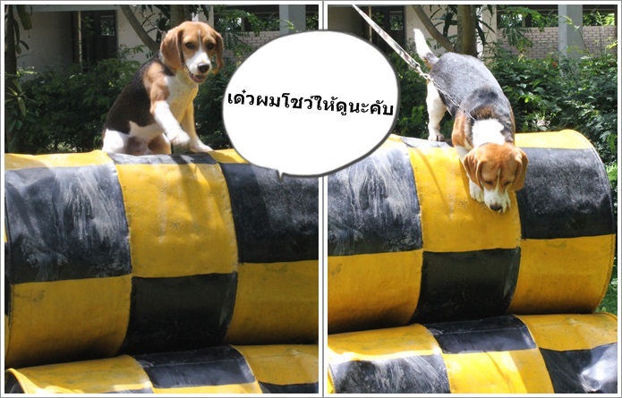 - ฝึกคำสั่งพื้นฐานเบื้องต้น (นั่ง ชิด หมอบ คอย)