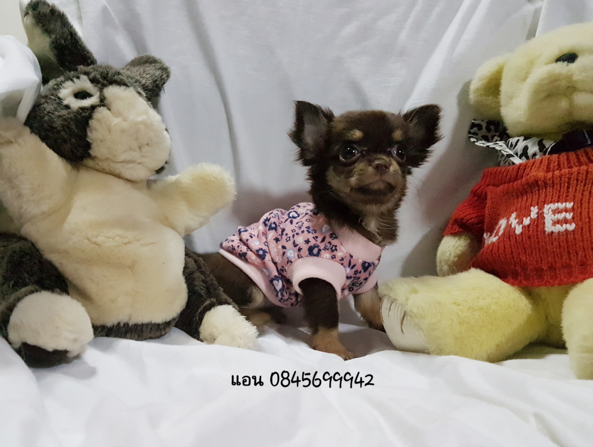 ชิวาวาขนยาว ไซร์เล็ก เพศเมีย สีช็อคแทน อายุ 2เดือน แข็งแรง ปลอดโรค100% ตัวเล็ก มีคิ้ว ฝึกกินอาหารเม็ดได้แล้ว ร่าเริง ขี้เล่น ขี้ประจบ พร้อมย้ายบ้าน มีบริการส่งคะ