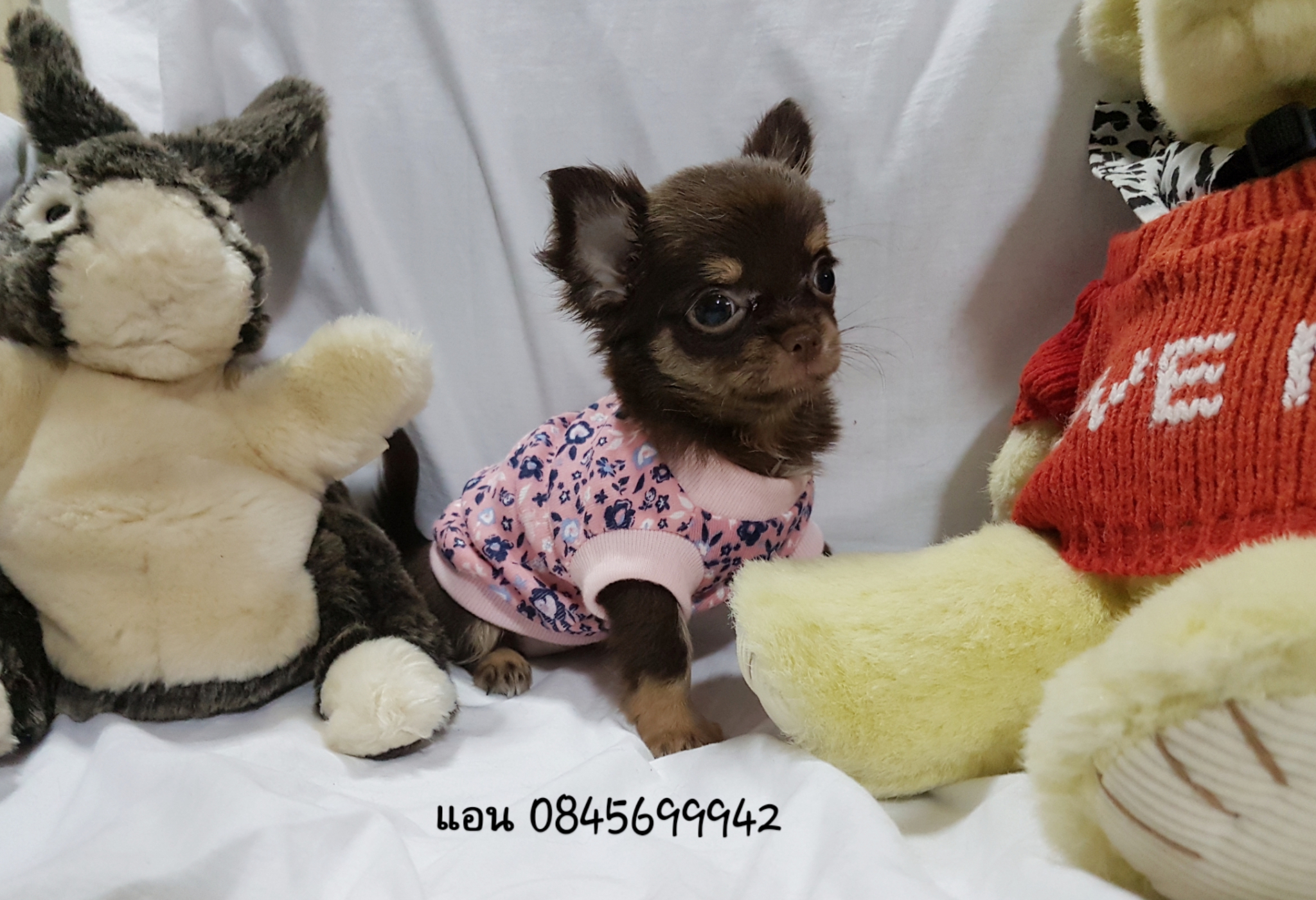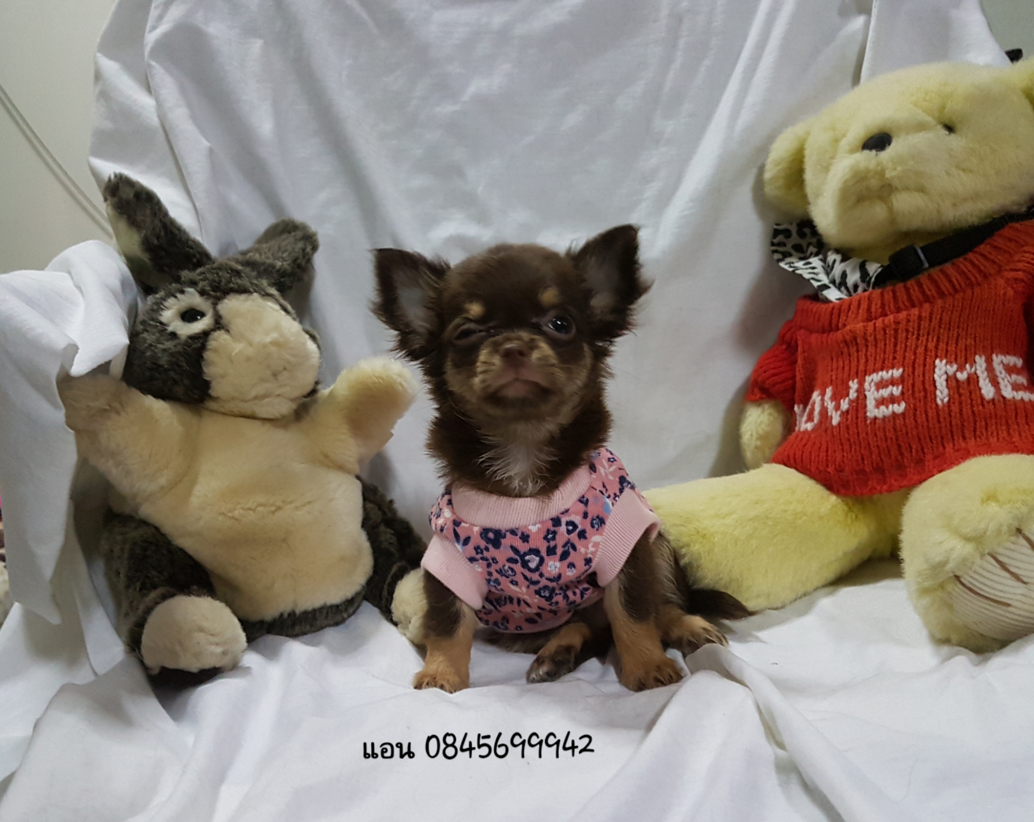 ลดราคาพิเศษ ชิวาวาขนยาว ไซร์เล็ก เพศเมีย สีช็อคแทน ตัวเล็ก น่ารัก พร้อมย้ายบ้านคะ