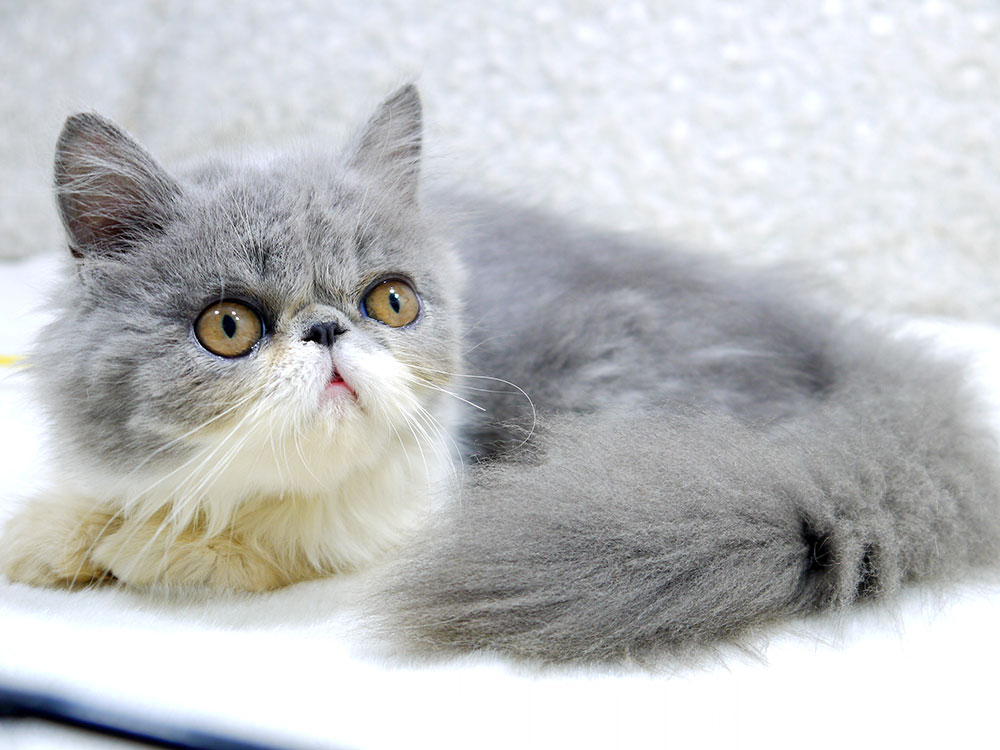 ขายลูกแมวเปอร์เซีย สีขาวเทา หน้าบี้ เพศเมีย 3 เดือนกว่า 5800 บาท