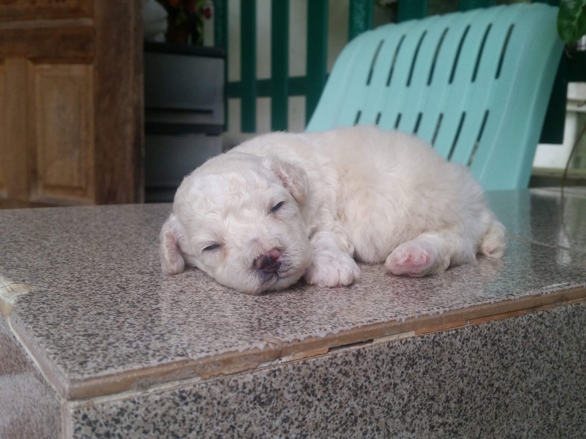 พุดเดิ้ลทอย สีขาว/เพศผู้ ขนหยิกตัวเล็กๆน่ารักดูรูป&คลิบเพิ่มได้คะ