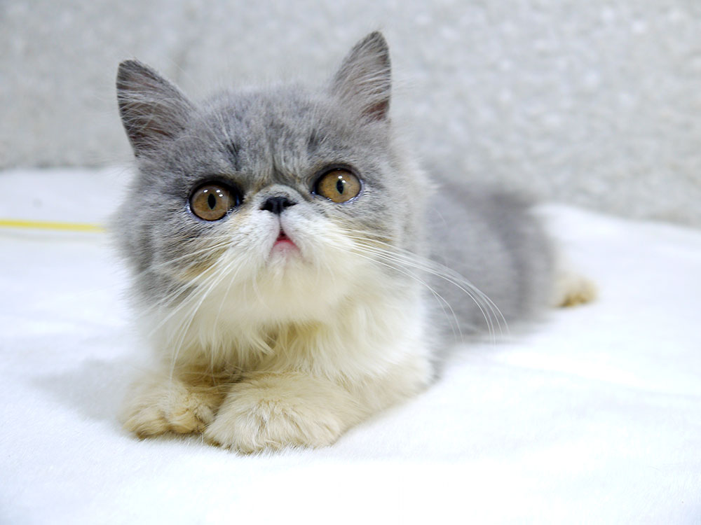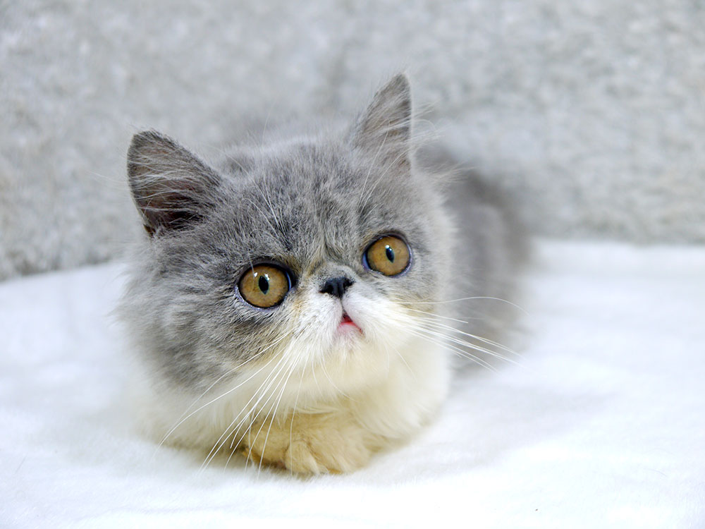 ขายลูกแมวเปอร์เซีย สีขาวเทา หน้าบี้ เพศเมีย 3 เดือนกว่า 5800 บาท