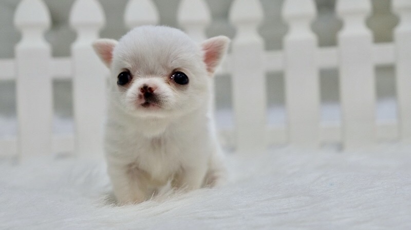 ชิวาวาเพศเมีย ขนยาวสีขาว หัวโตหน้าหวาน