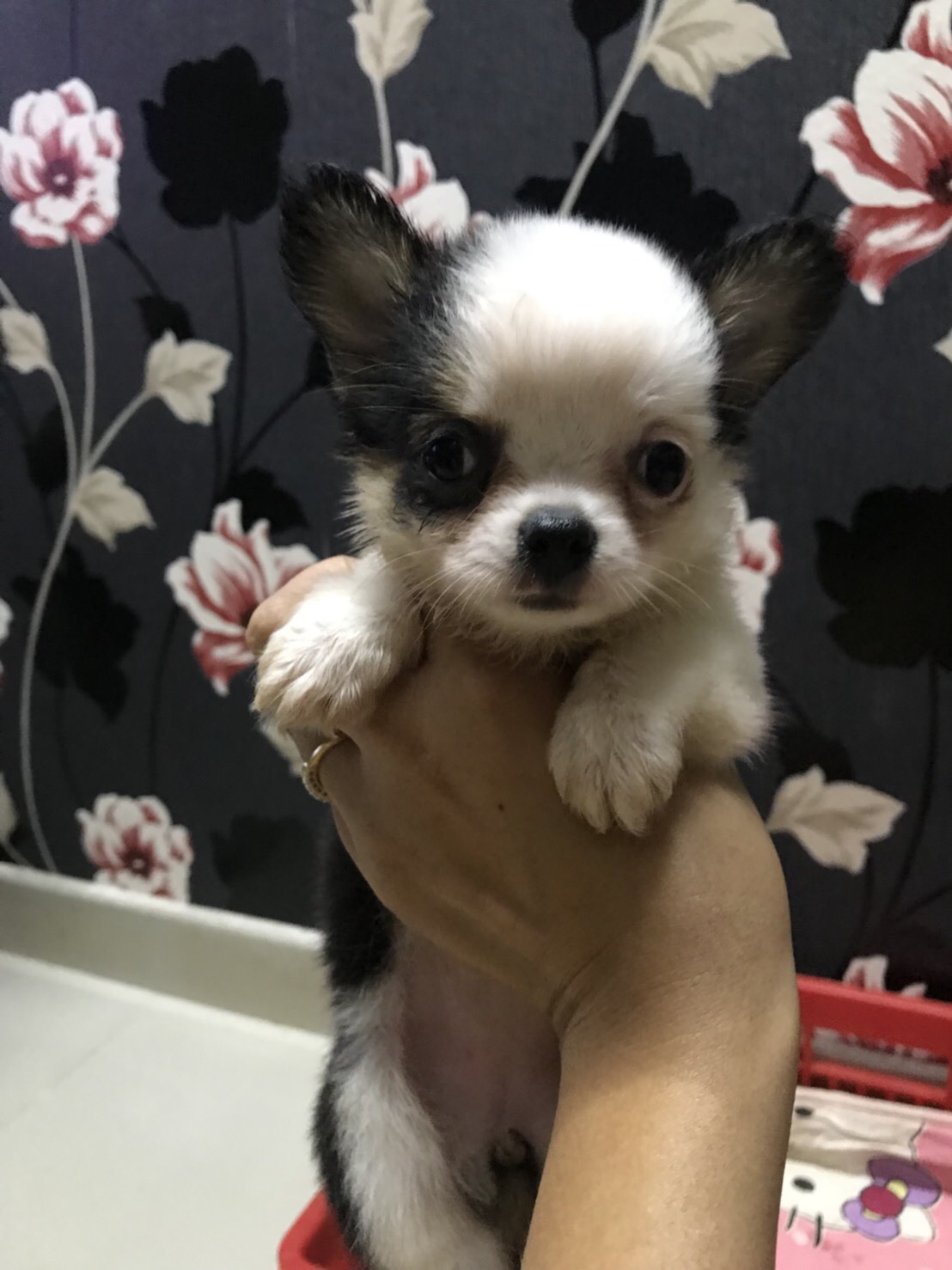 ขายชิวาวา ขนยาว เพศเมีย สีแบล็คแทนคอขาว ไซร์เล็ก หน้าสั้น อายุ 2 เดือน สวยใส น่ารัก รับประกันสุขภาพด