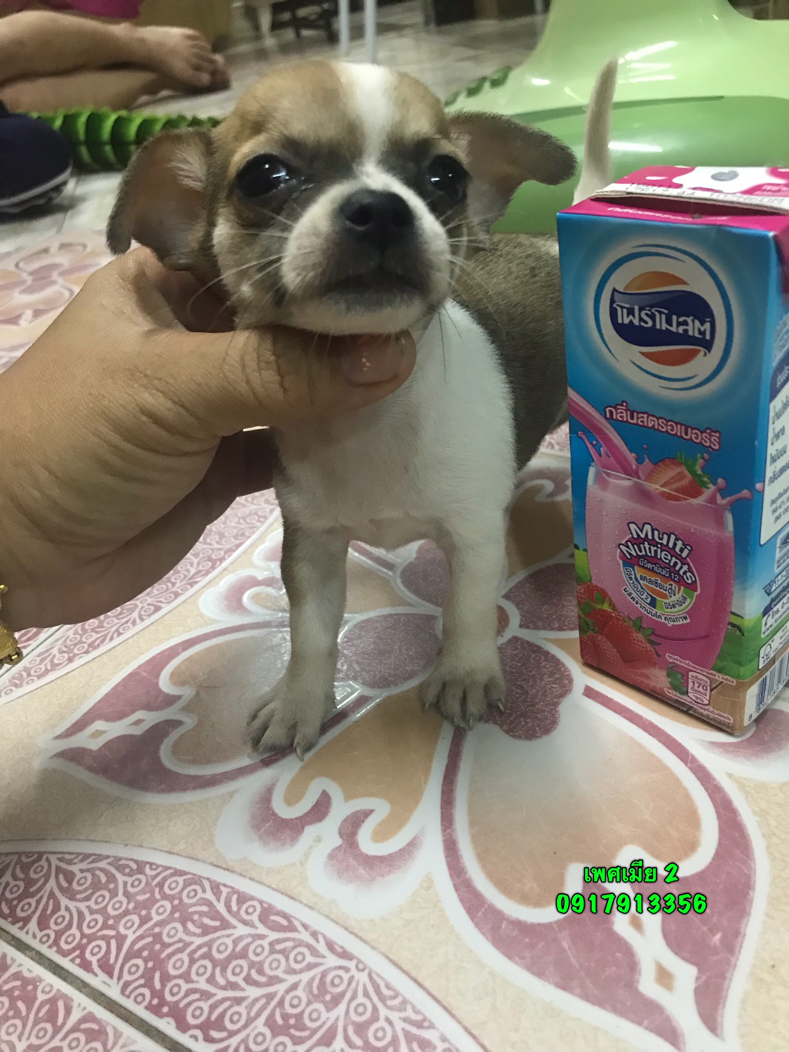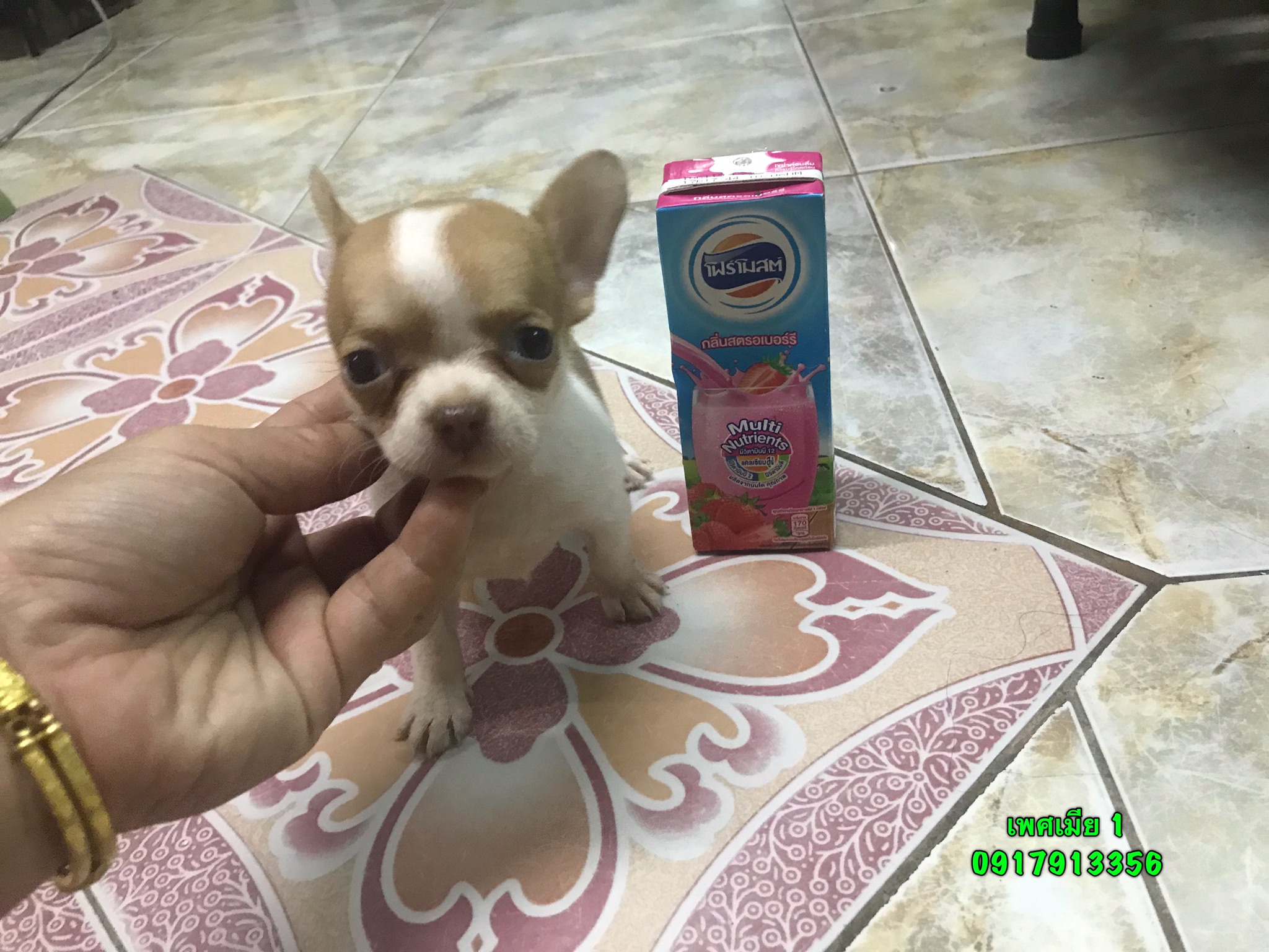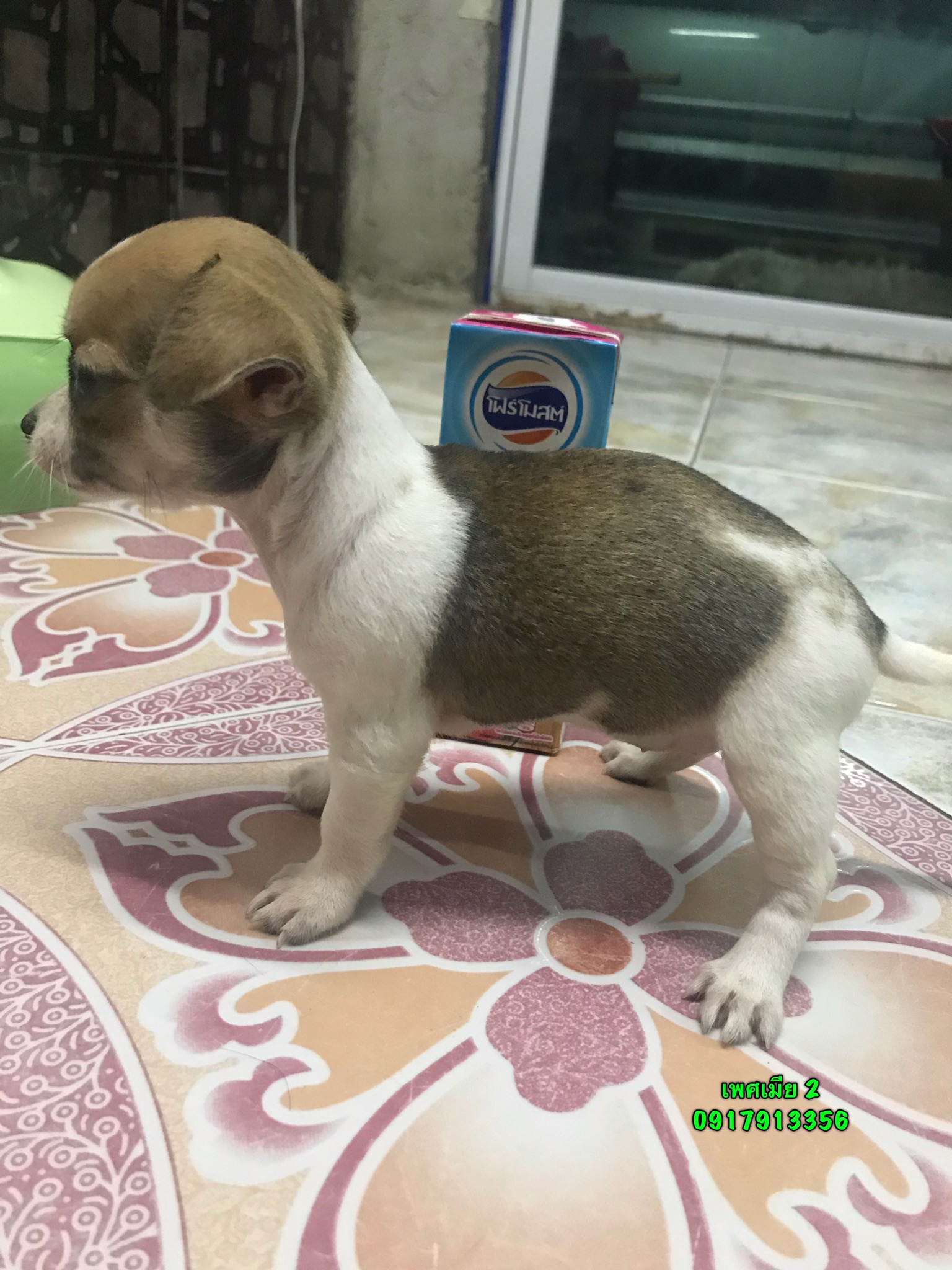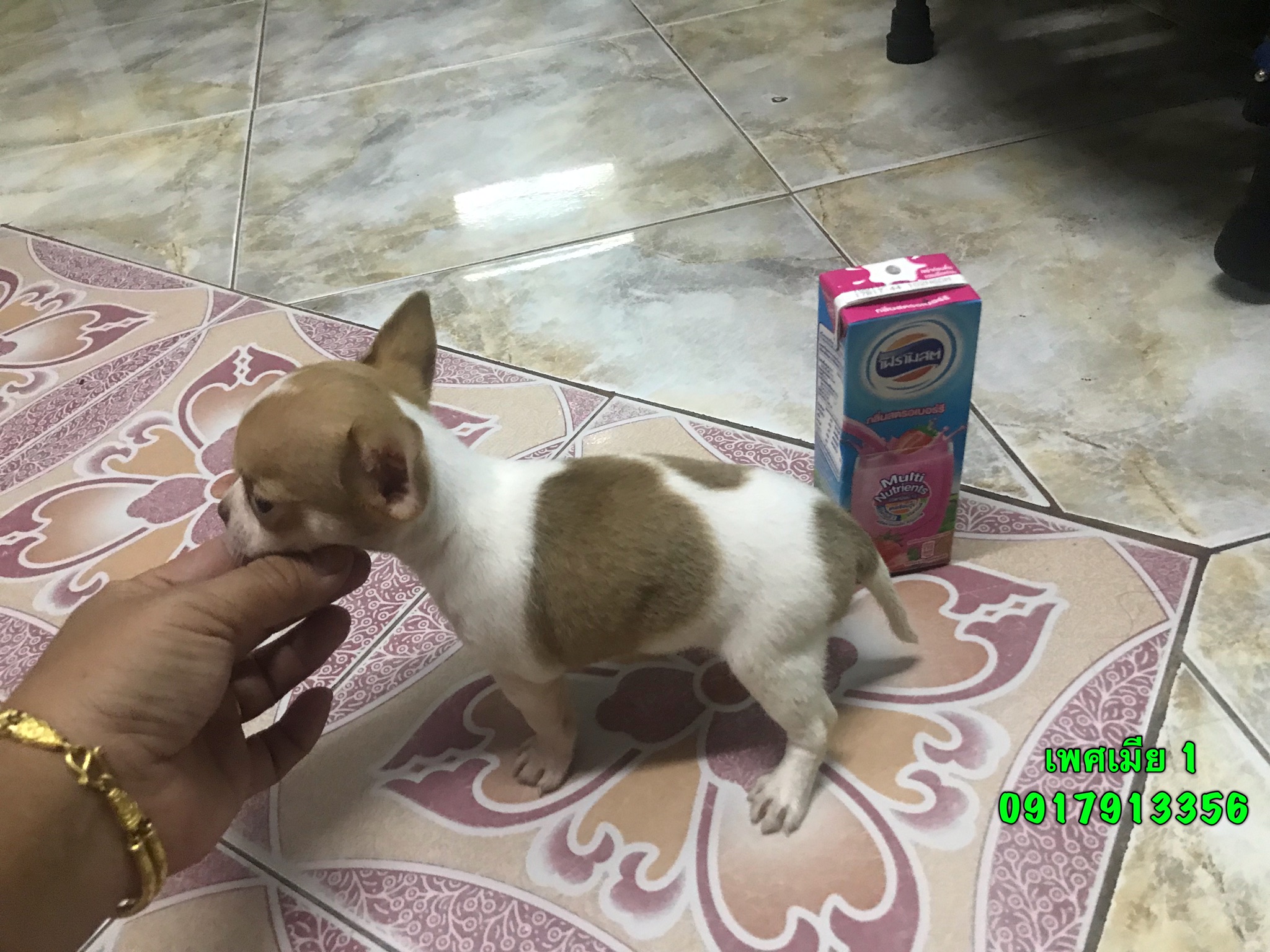 แม่เป็นชิวาว่าขนสั้น สีขาว น้ำตาล