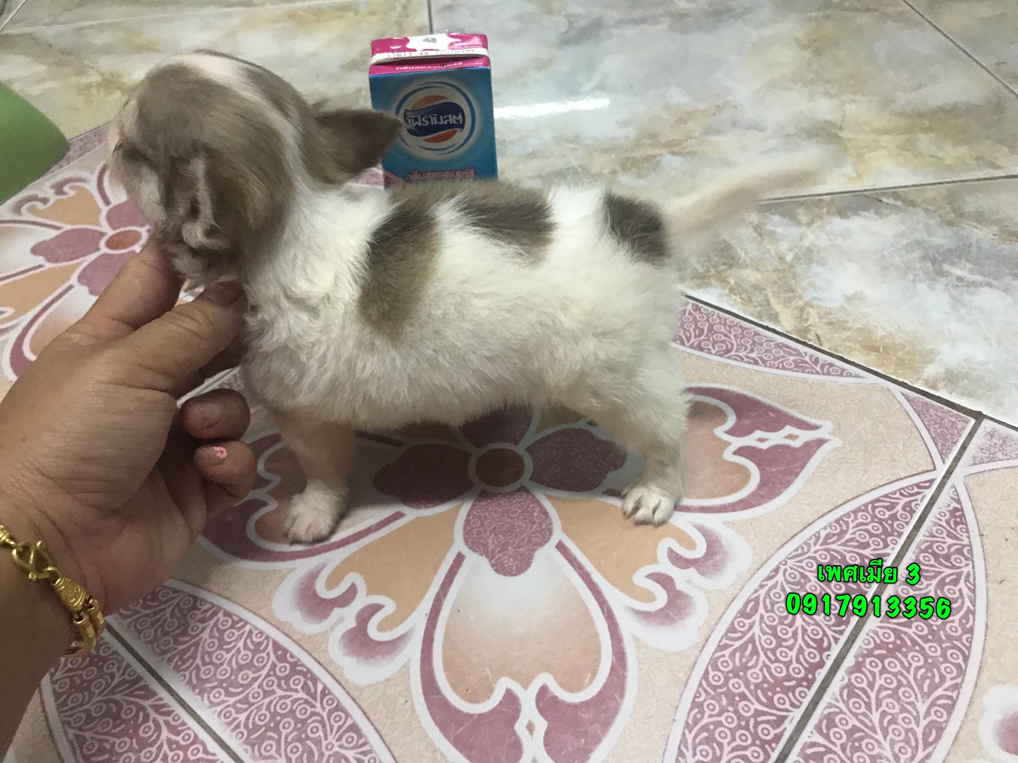 เพศเมีย 1 ขนสั้น หัวโตหน้าสั้นสี ขาวน้ำตาล 2500 บาท