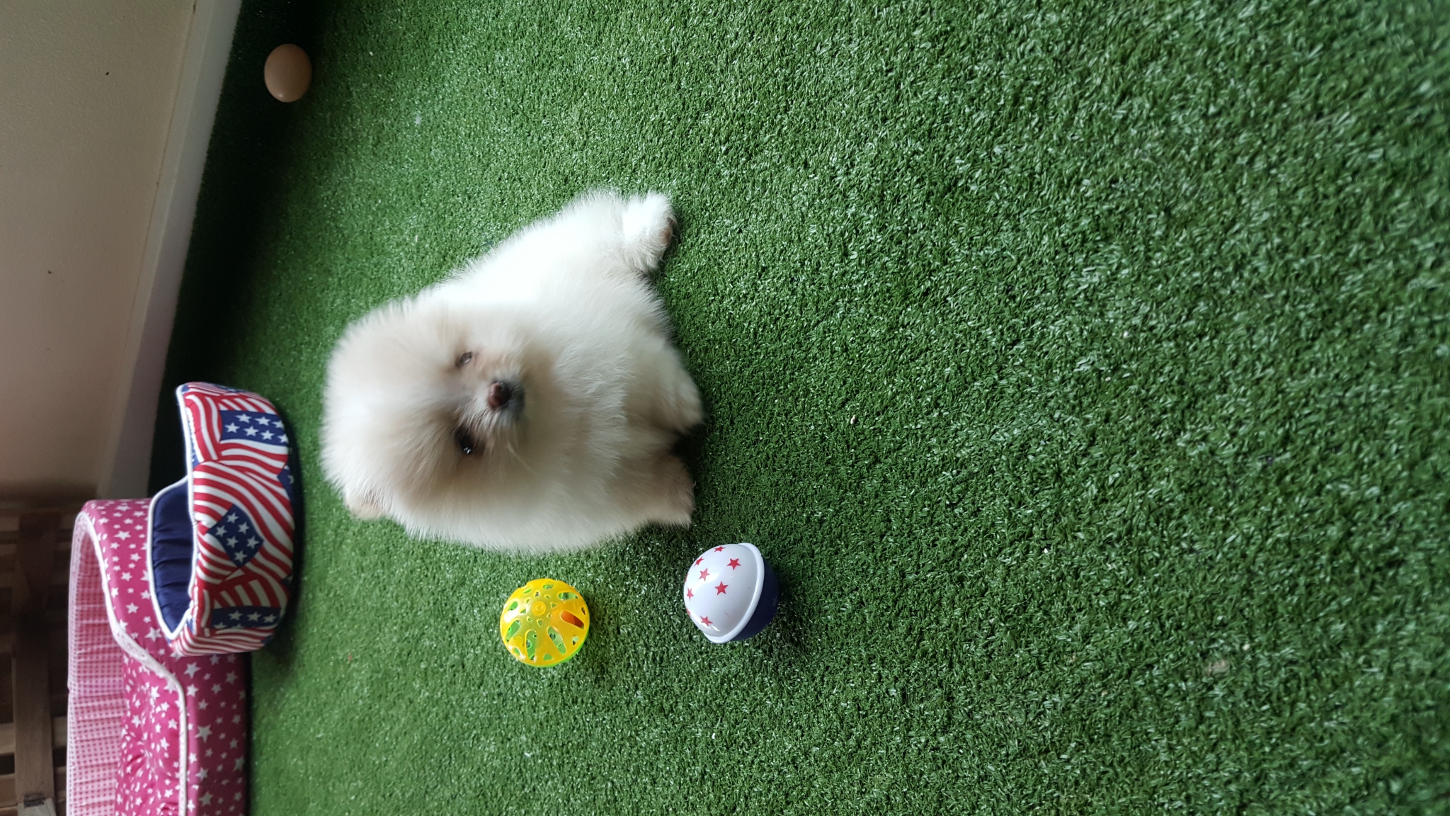 ปอมเมอเรเนี่ยนสีขาวครีม เพศเมีย หน้าหมี100% ไมีหมียินดีคืนเงิน เพ็ดดีกรีเต็มใบ