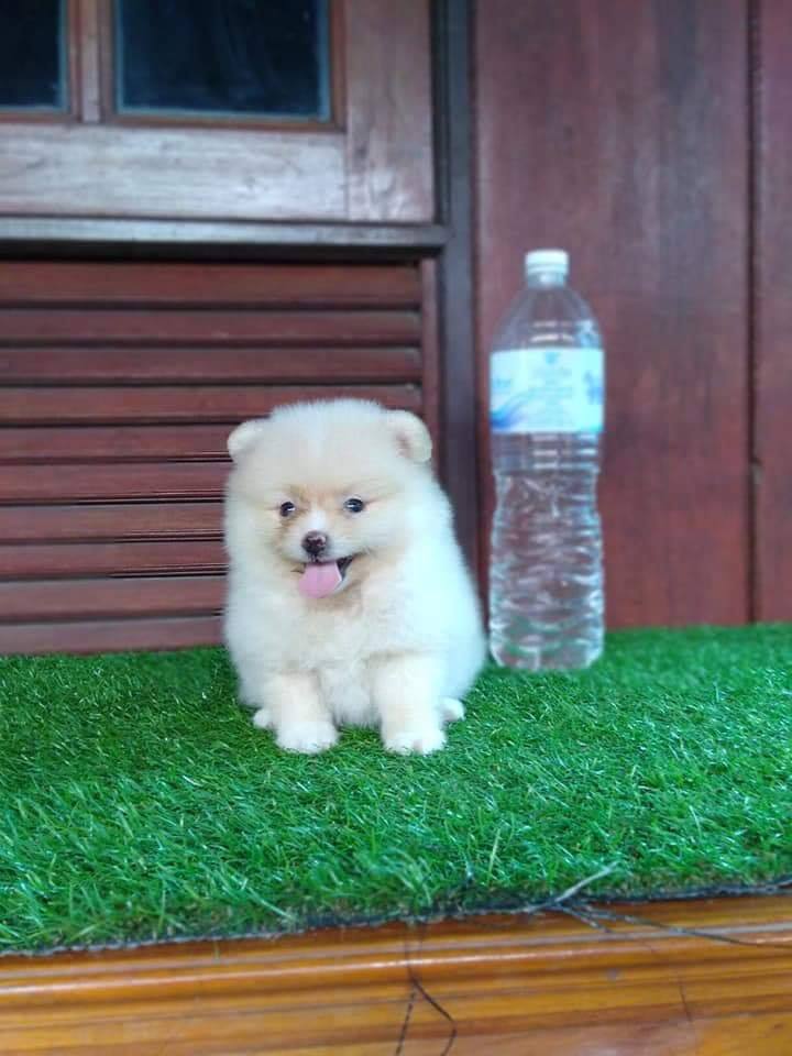 ปอมเพศเมียสีขาวครีม พ่อมีใบเพ็ดเต็มใบ พร้อมถ่ายพยาธิและฉีดวัคซีนเพียง 5500 ค๊า
