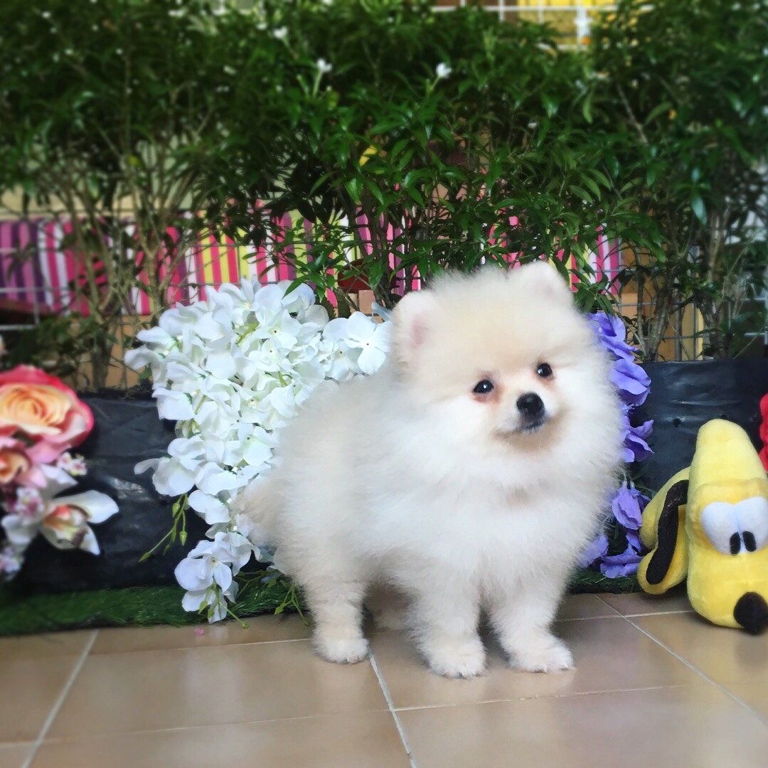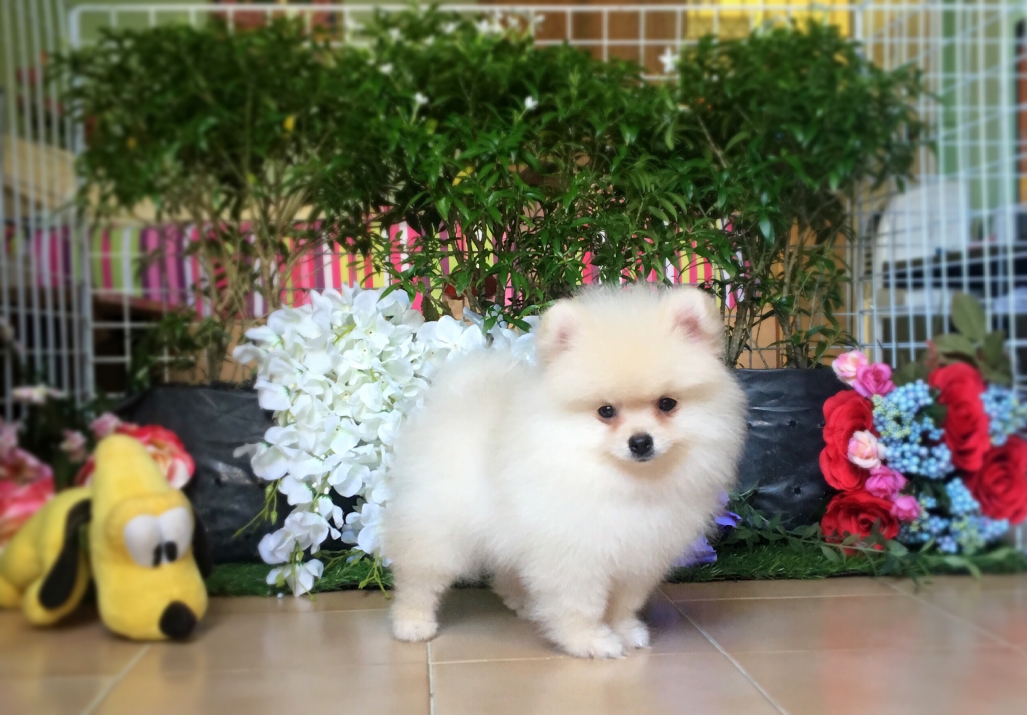 น้องปอม ปอมสีขาวครีม เพศผู้ สายพันธุ์แท้ หน้าหมี ขนแน่นๆ ราคากันเองมาแล้วครับ