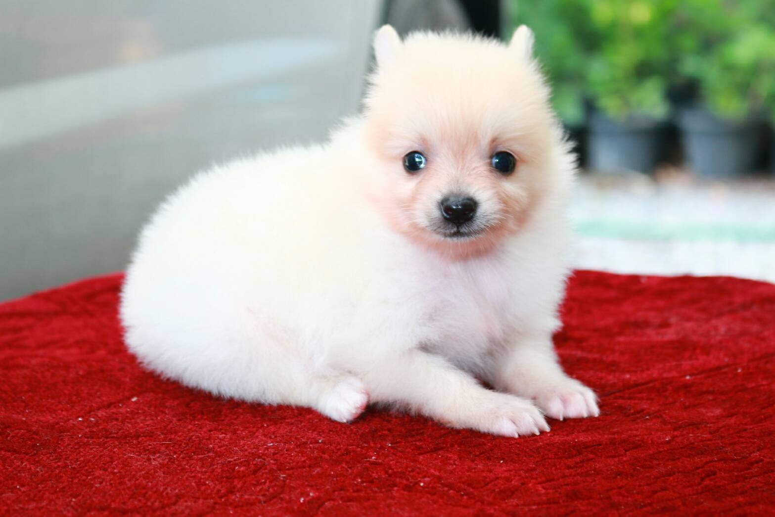 ขายลูกปอม90% เพศผู้1ตัว สีขาว-ครีม ขนฟูแน่น พร้อมประกันสุขภาพ