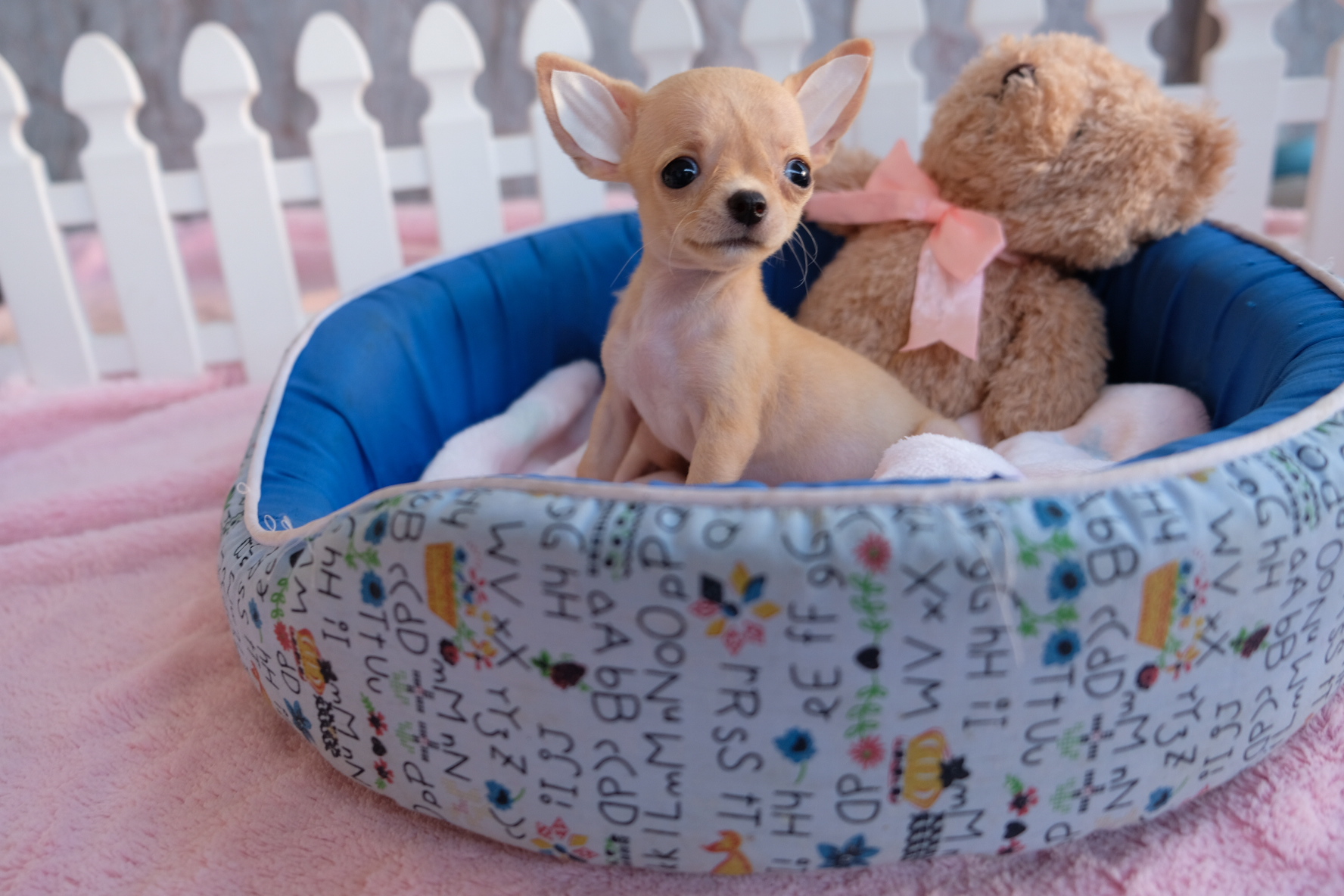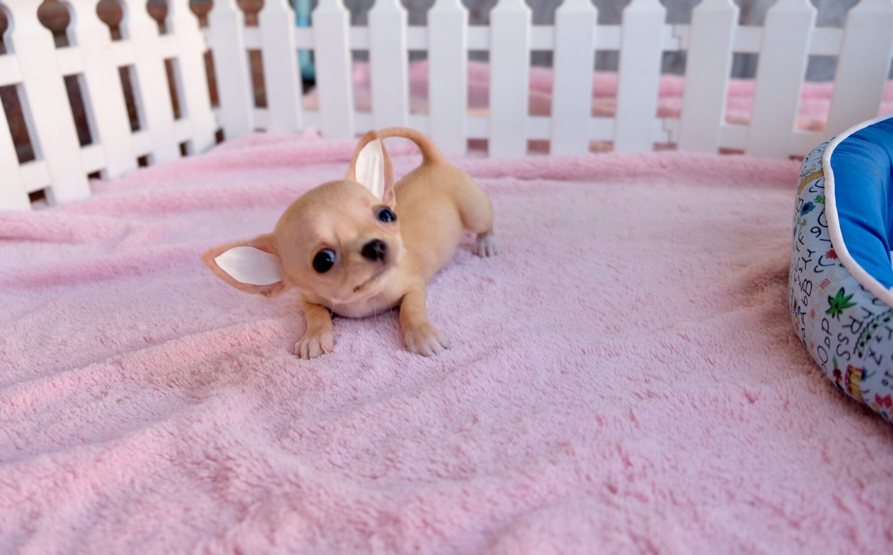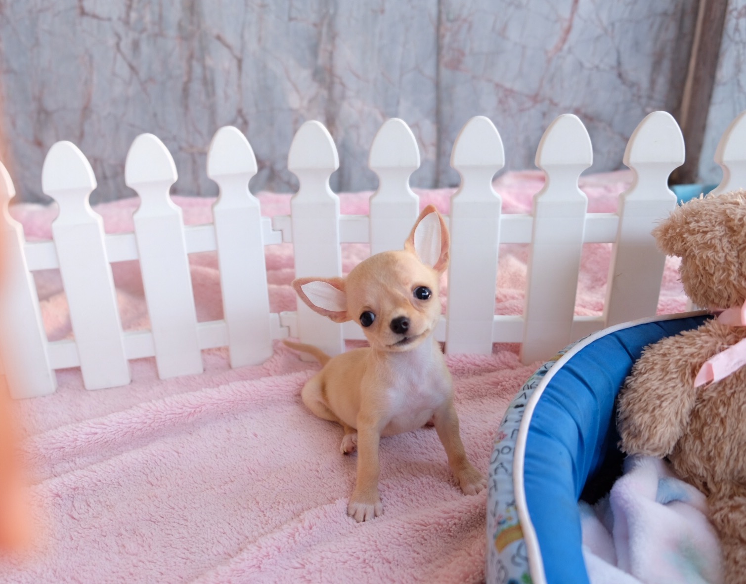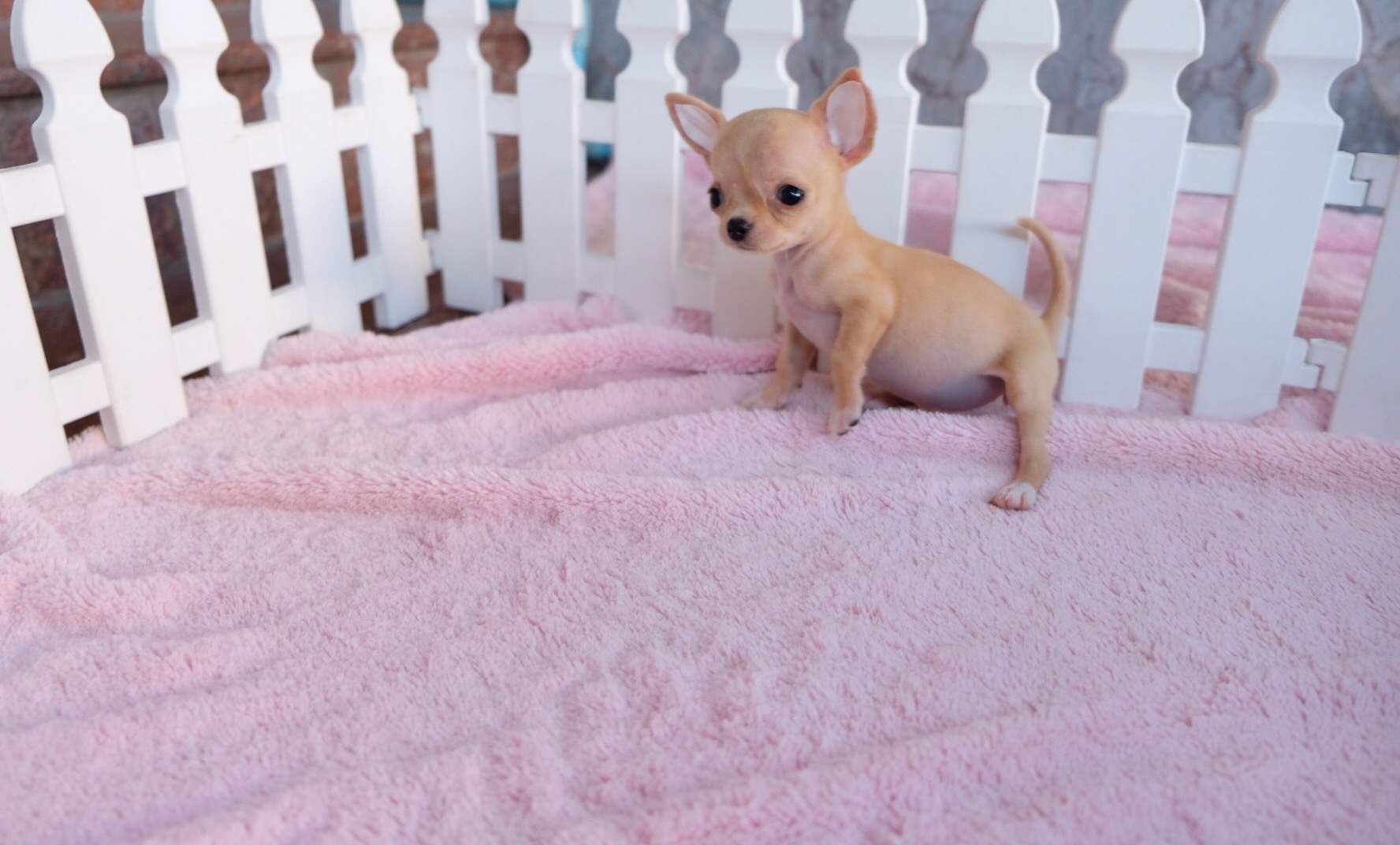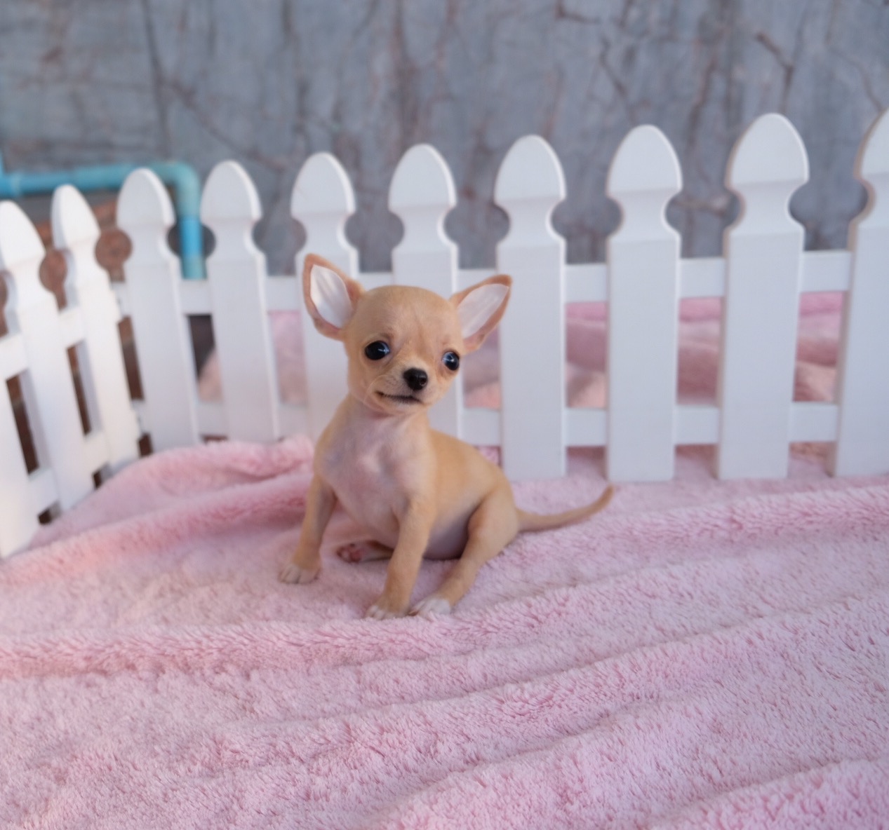ชิวาวาเพศเมีย ขนสั้นสีครีมทอง หัวโตหน้าหวาน