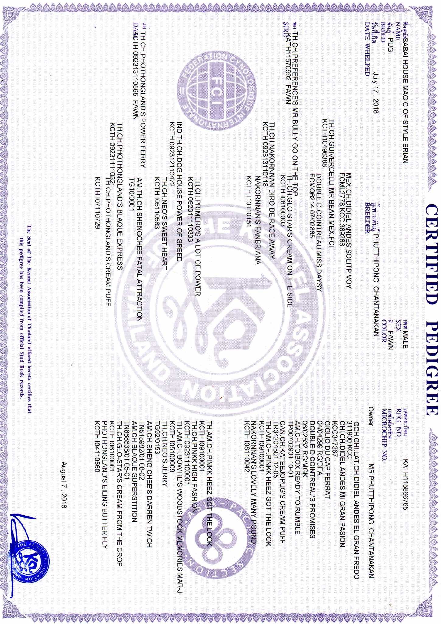 ปั๊กลูกไทยแชมป์ ผู้2 เมีย3 เพ็ดดีกรีเต็มใบ พร้อมย้ายบ้าน เกิดวันที่ 17/7/2018 วัคซีนแล้ว3เข็ม+ถ่ายพยาธิ สนใจสอบถาม ขอรายละเอียดเพิ่มเติมได้นะค่ะ โทร.0883777887