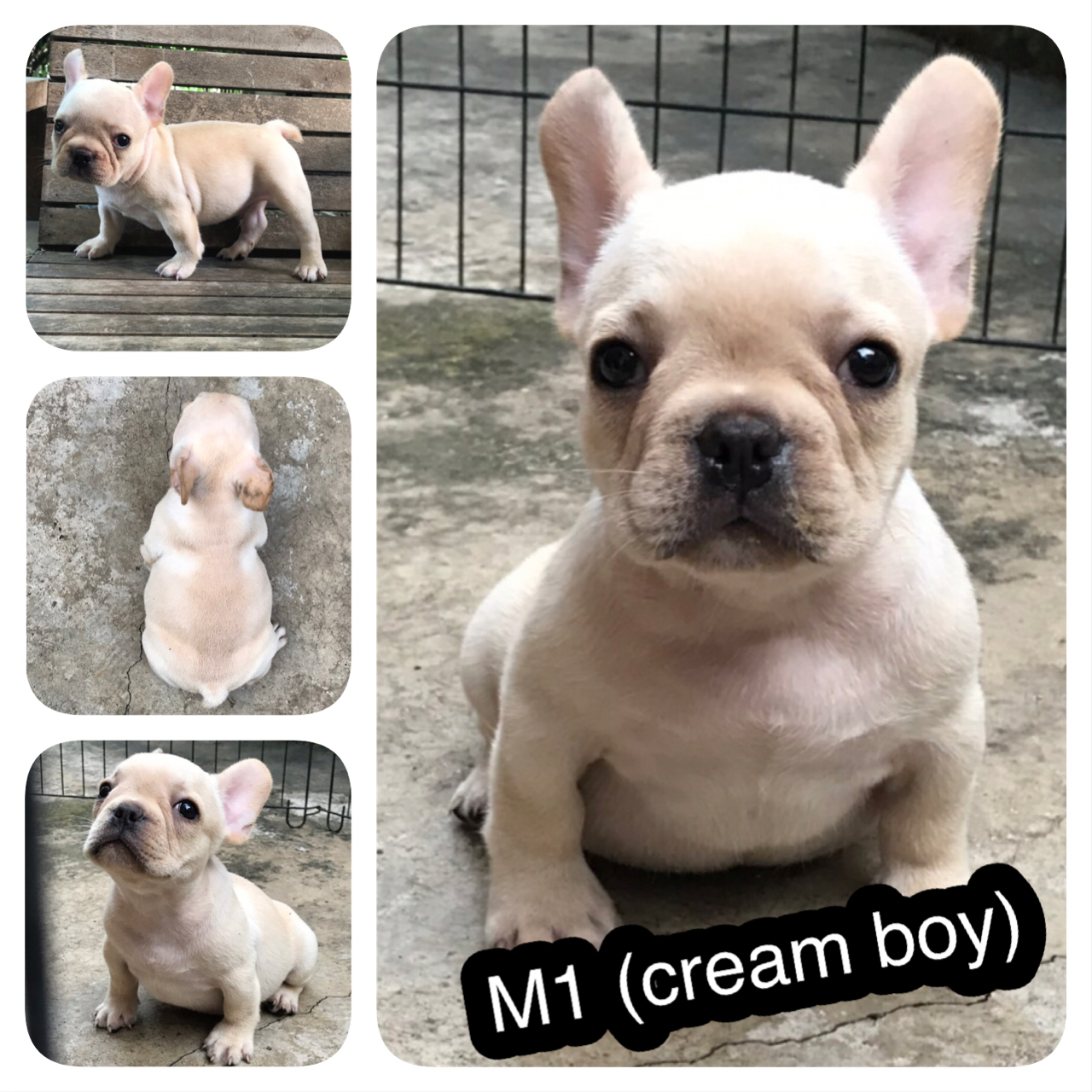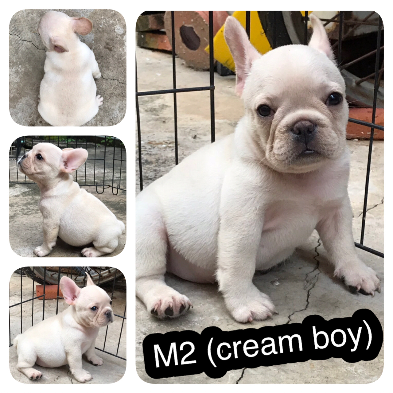 พร้อมย้ายบ้าน ลูกสุนัขพันธุ์เฟร้นบูลด็อก (เพศผู้) สีครีม อายุ 55 วัน พ่อครีมvsแม่ครีม โครงสร้างสวย หน้าสั้น ตัวสั้น