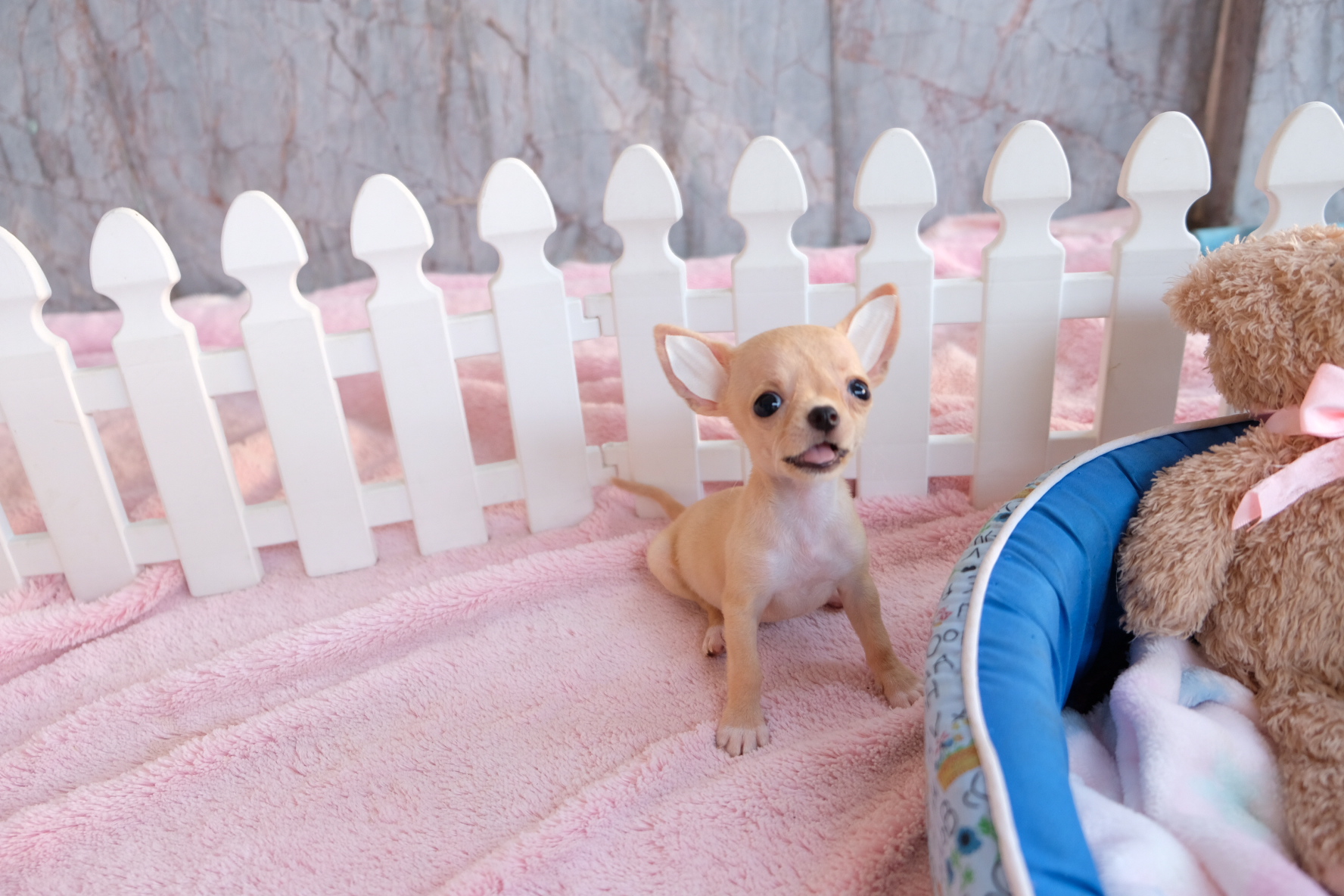 ชิวาวาเพศเมีย ขนสั้นสีครีมทอง หัวโตหน้าหวาน