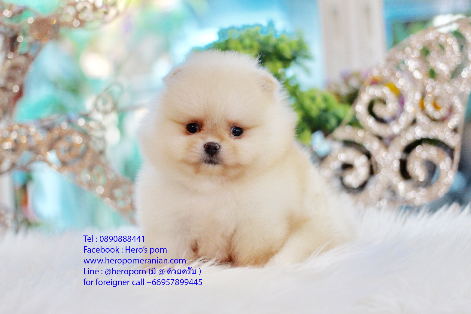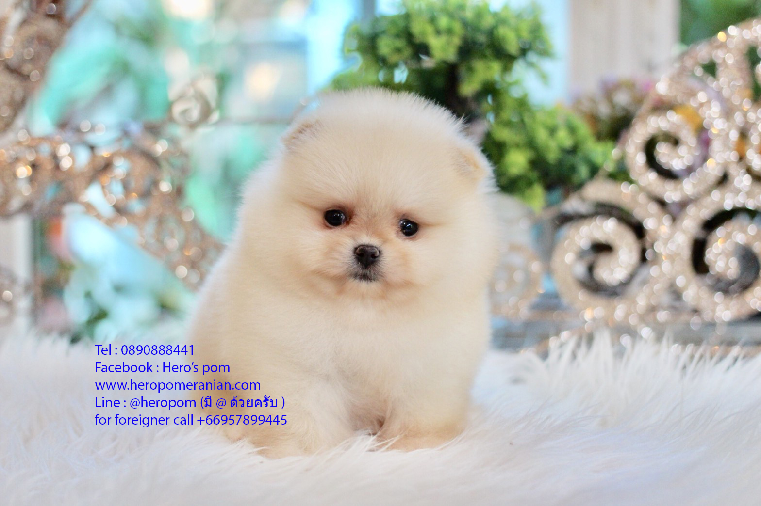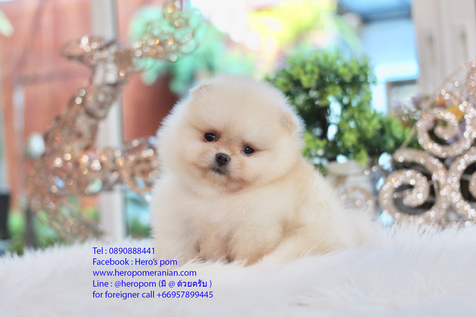 ปอมแท้หน้าสั้น เพศเมีย สีครีม ขนแน่น สายเลือดดี การันตีความสวย นัดเข้าชมตัวจริงได้ที่ Line:@heropom