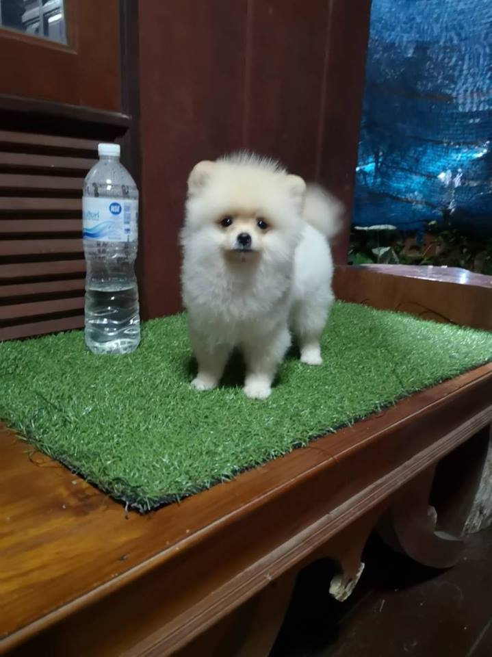 ปอมเพศเมีย สีขาวครีม หน้าหมี พร้อมใบเพ็ดเต็มใบ สวยน่ารักในราคาสุดคุ้มเพียง 8,500 บาทเท่านั้น