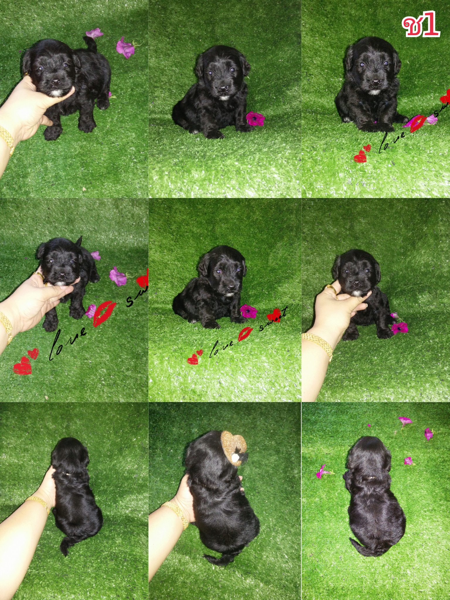 ชิสุผสมพุดเดิ้ล สีดำ เงา เพศ ผู้ อายุ 47 วัน กำลังน่ารัก