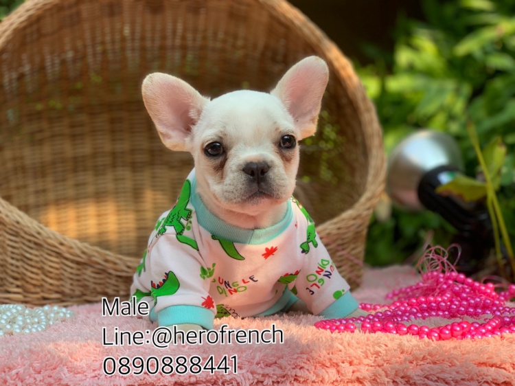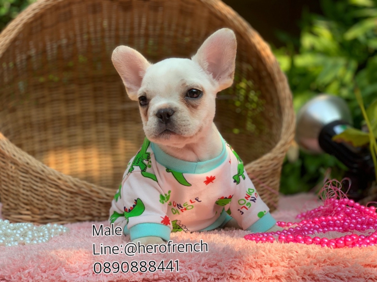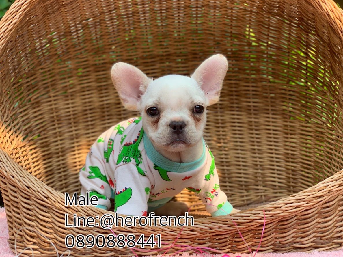 เฟรนซ์บลูด็อก เพศผู้ สีขาว ใบหูสั้น สายเลือดดี สุขภาพแข็งแรง Tel. 089-0888441 ID line: herofrench
