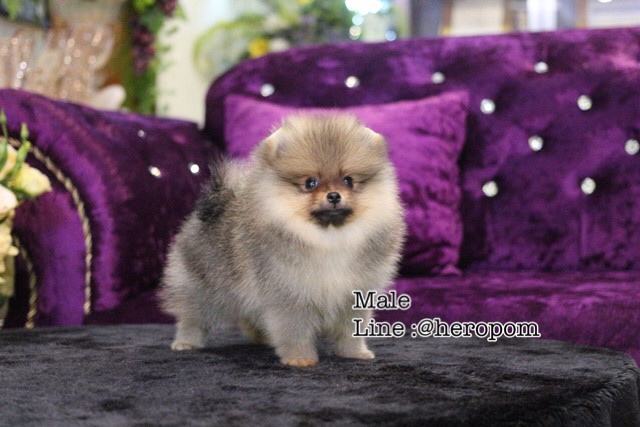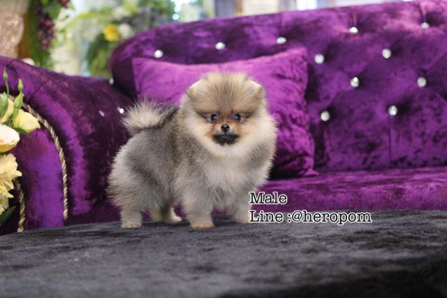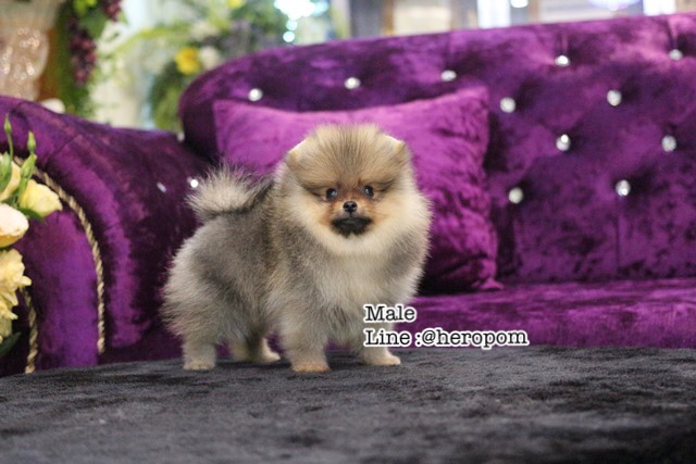 ขายปอม เพศผู้ หน้าหมี ขนแน่น สีส้มเทา ทรงสั้นสวย สุขภาพแข็งแรง line :@heropom