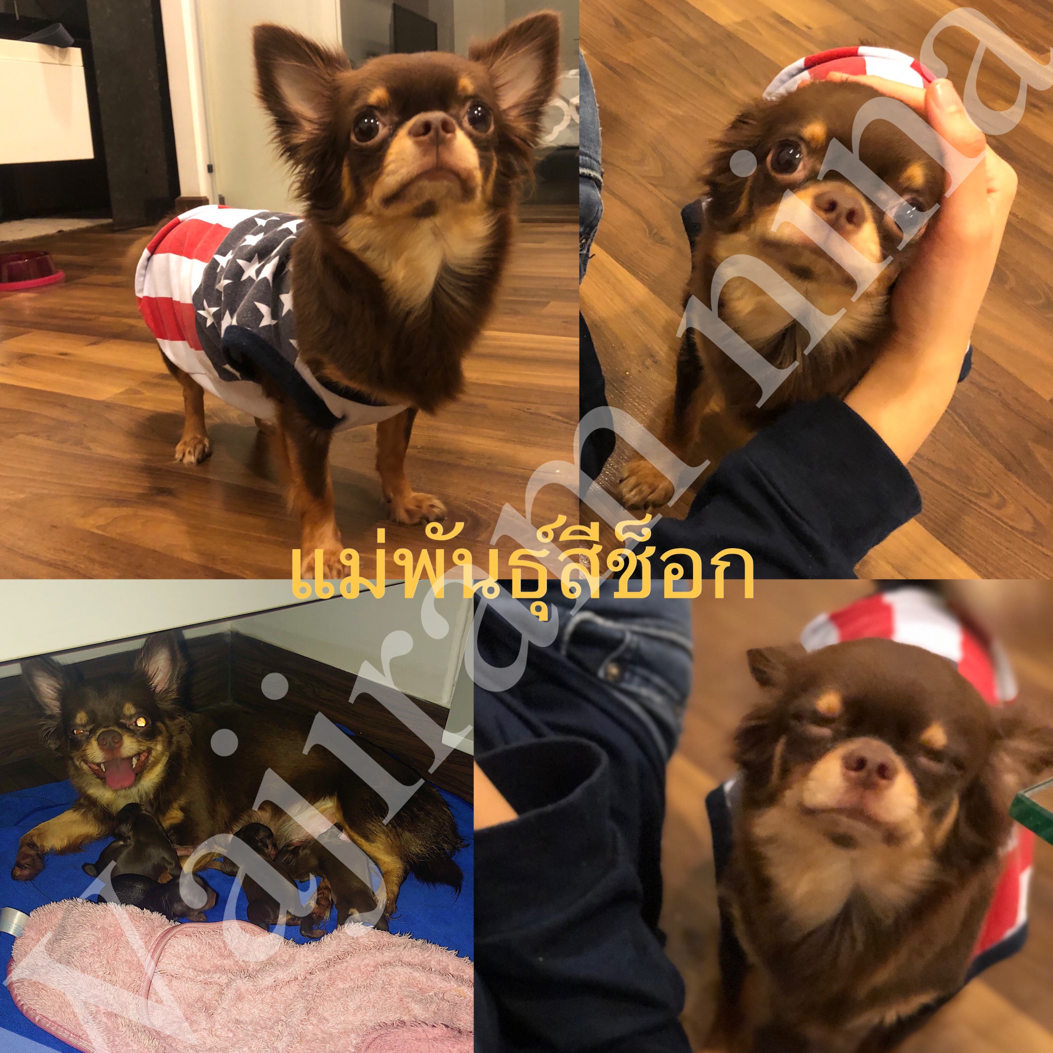 ขายแม่พันธุ์สีช็อกและลูกชิวาวา(ผสมกับชิวาวาขนสั้นสีช็อก-ขาวหนัก1โลนิดๆพ่อตัวเล็กมาก)