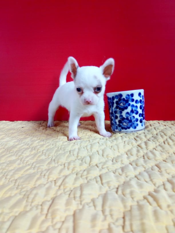 ลูกชิวาวา ขนสั้น เพศผู้ ไซด์จิ๋ว สีขาวใส่แว่น ราคา3500 นนทบุรี สนามบินน้ำ 0840844646จัดส่ง