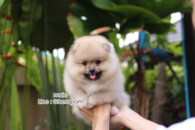 ปอมหน้าหมี เพศผู้ สีส้มครีม หน้าสั้น ตัวเล็ก ขาใหญ่ สายเลือดดี สอบถามเพิ่มเติมได้ที่ Line : @heropom