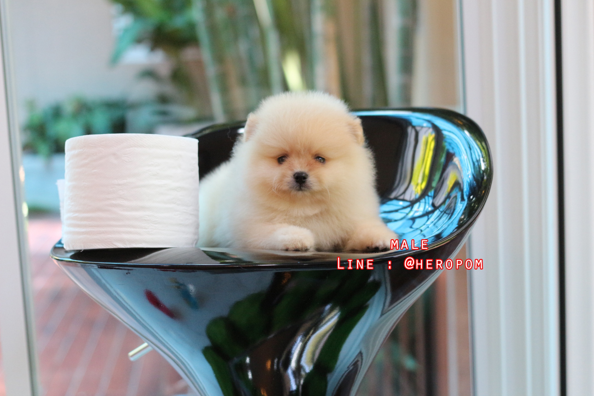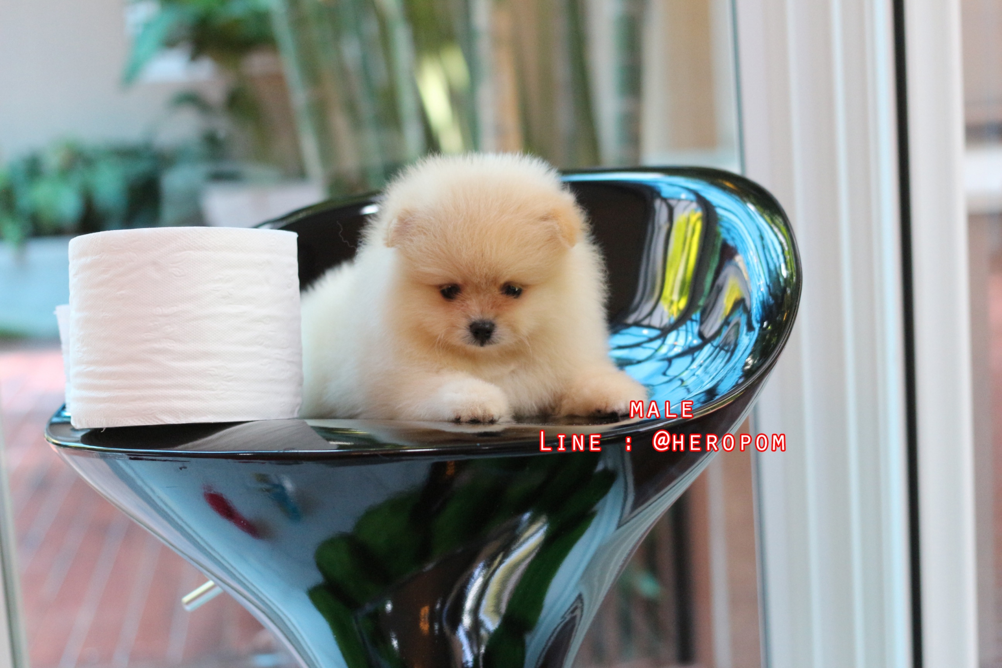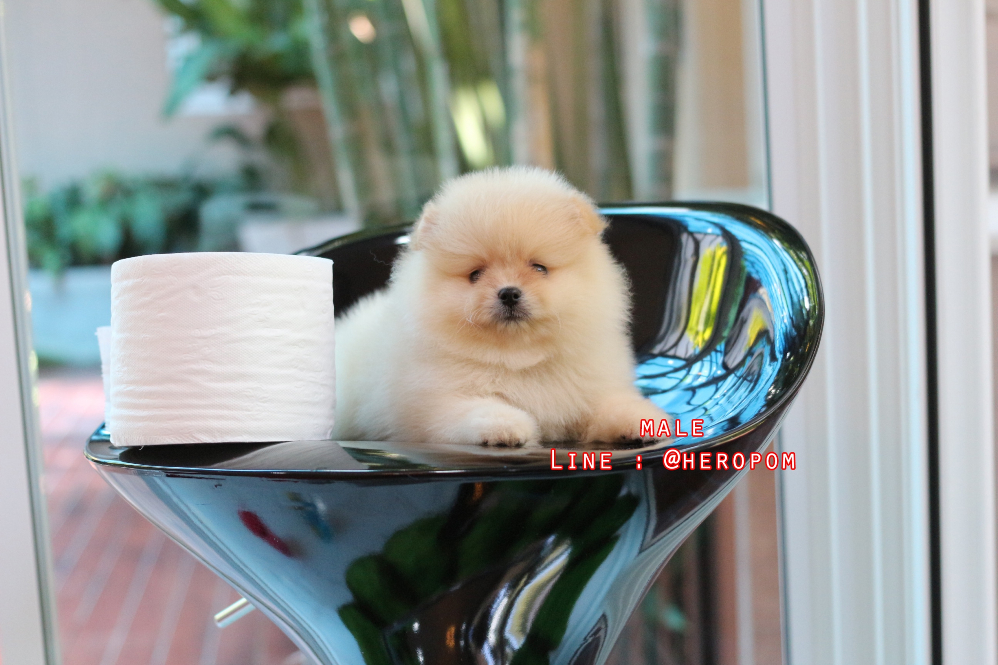 ปอมหน้าหมี เพศผู้ สีครีม หน้าสั้น ตัวเล็ก ขาใหญ่ สายเลือดดี สอบถามเพิ่มเติมได้ที่ Line : @heropom